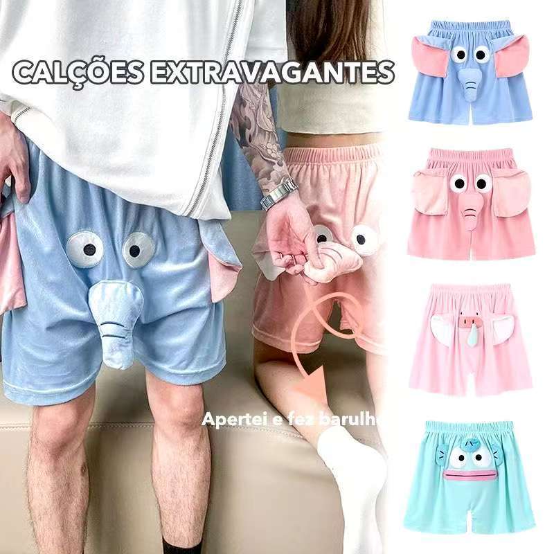 Pijama de elefante engraçado casal shorts fofos calças de verão casa / Calça de pijama casal