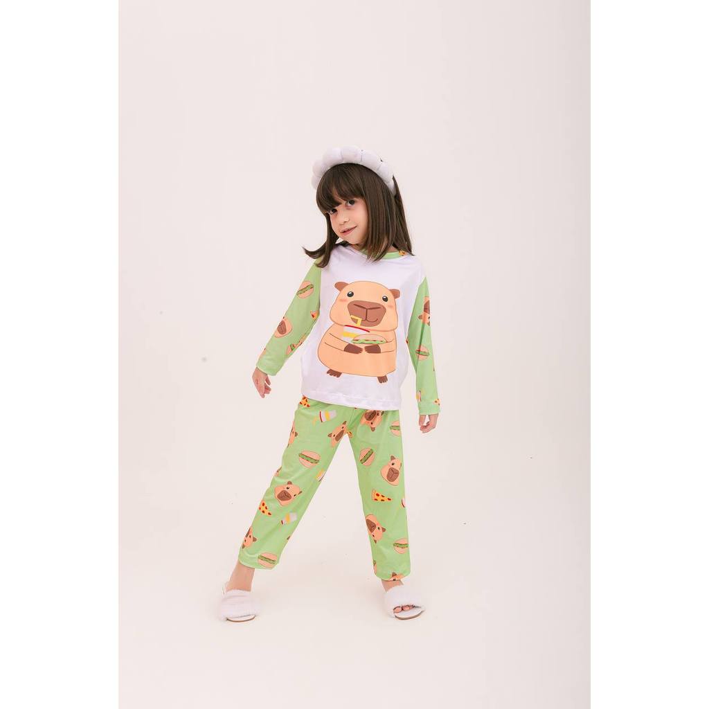 Pijama infantil inverno manga longa em suede menina