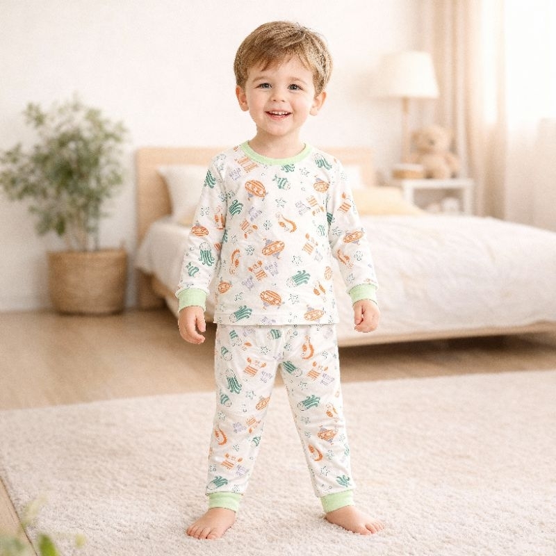 Pijama infantil menino e menina manga longa