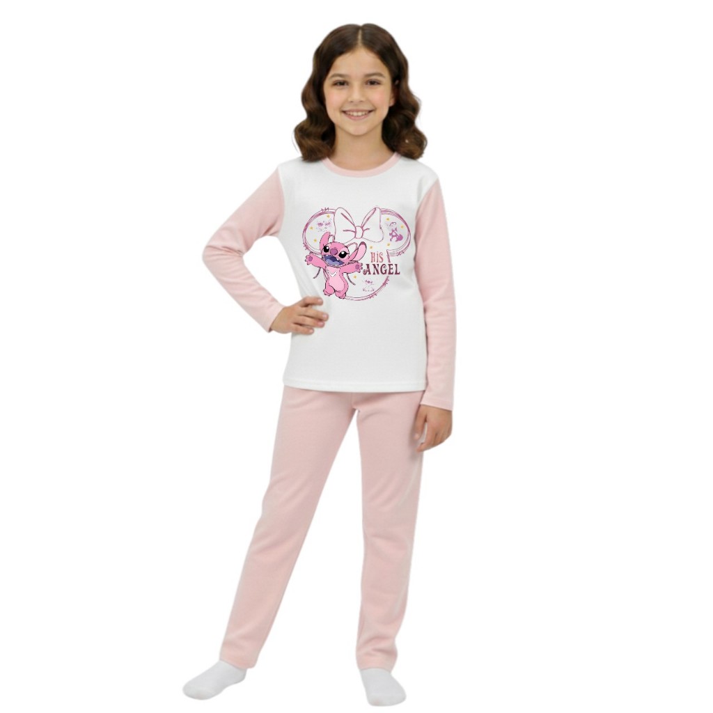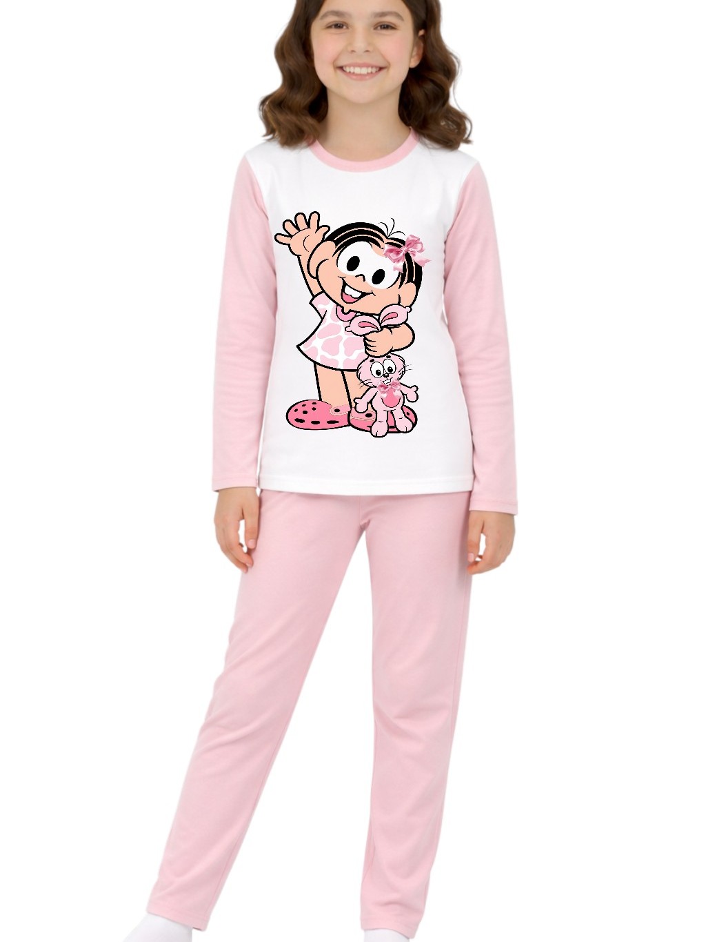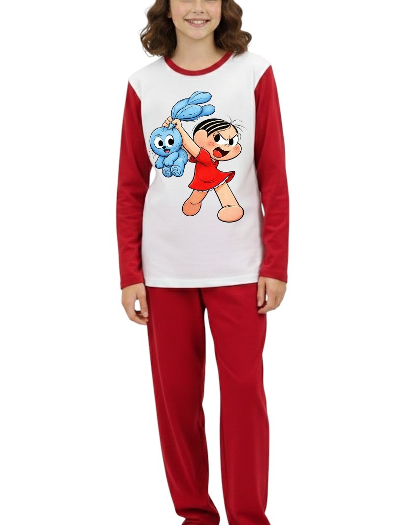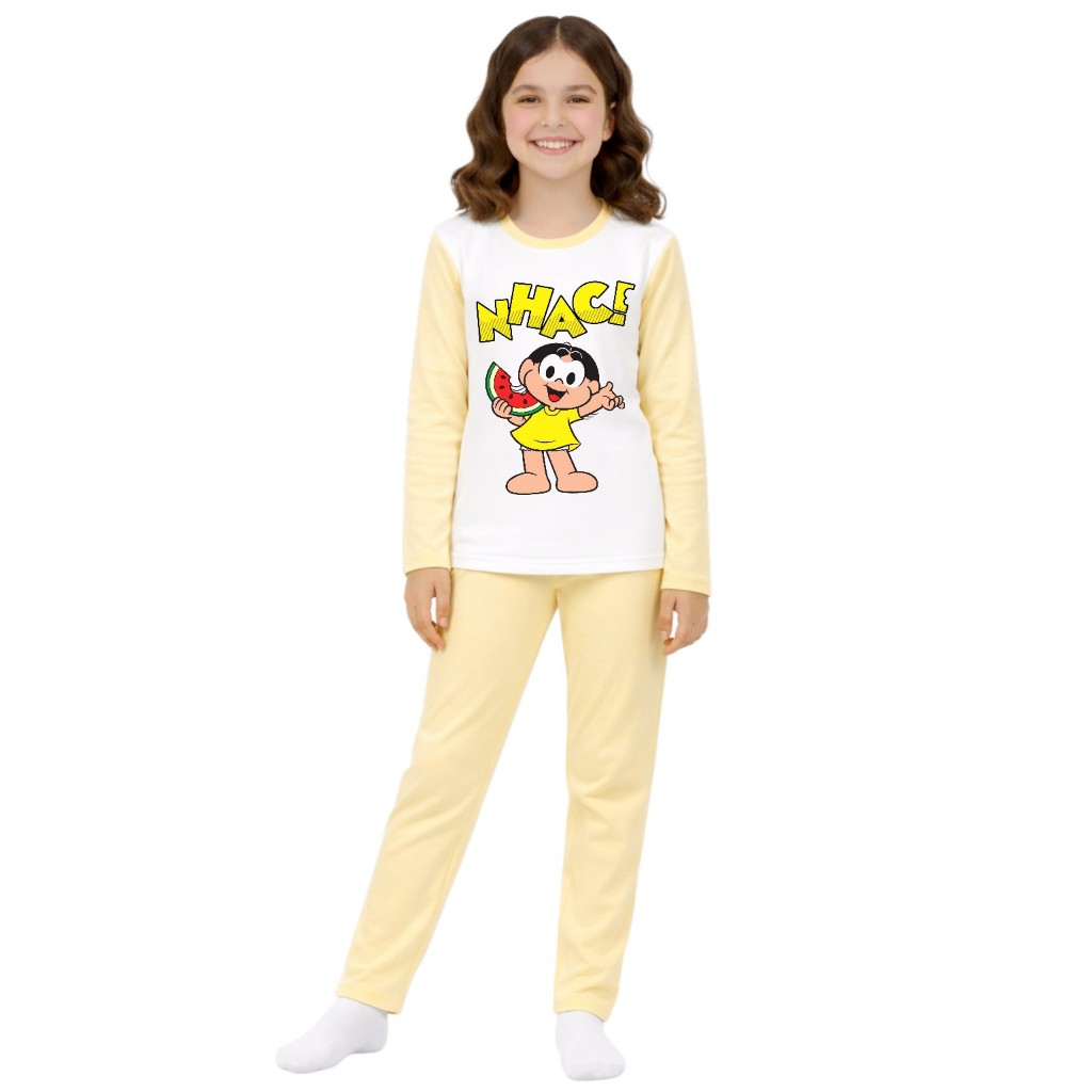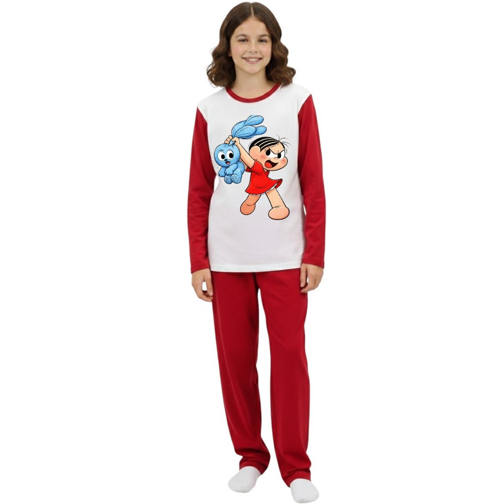 Pijama longo femenino infantil malha pp moda frio