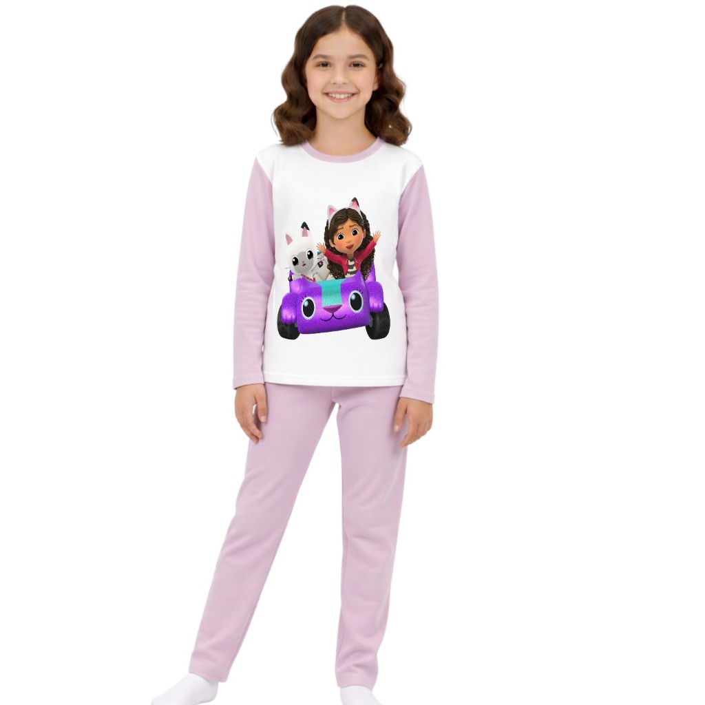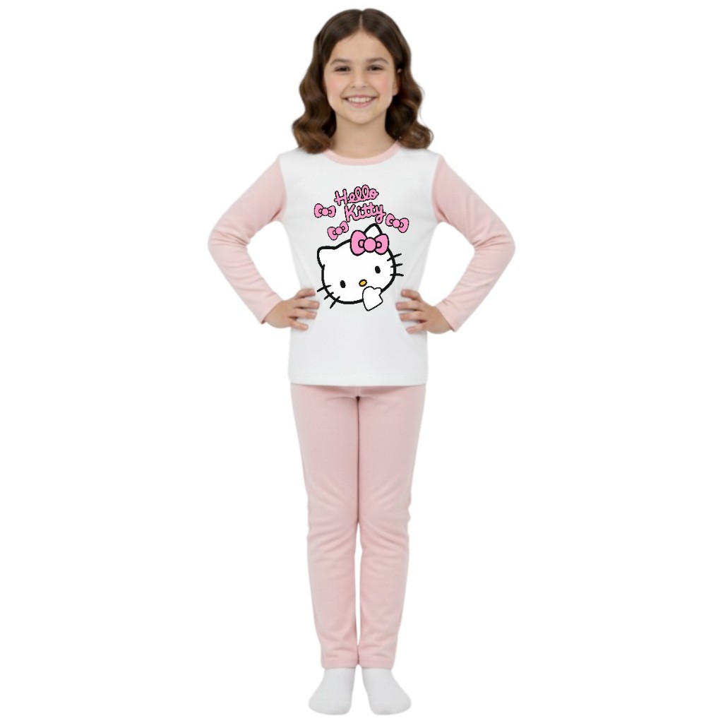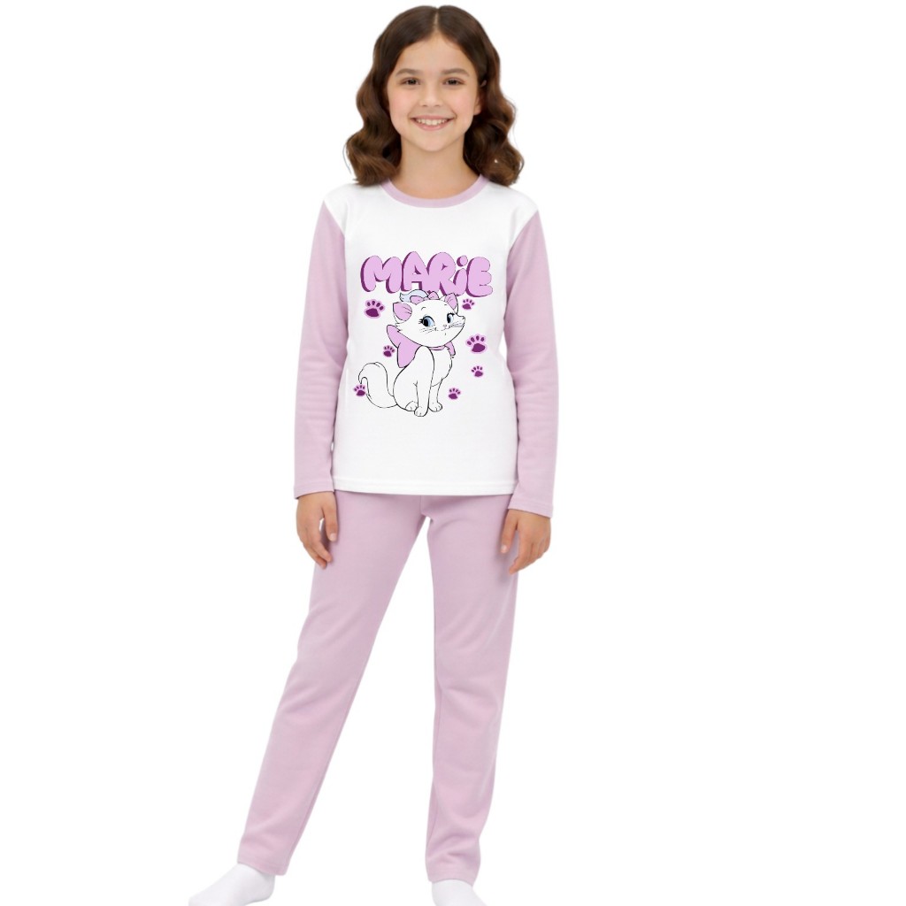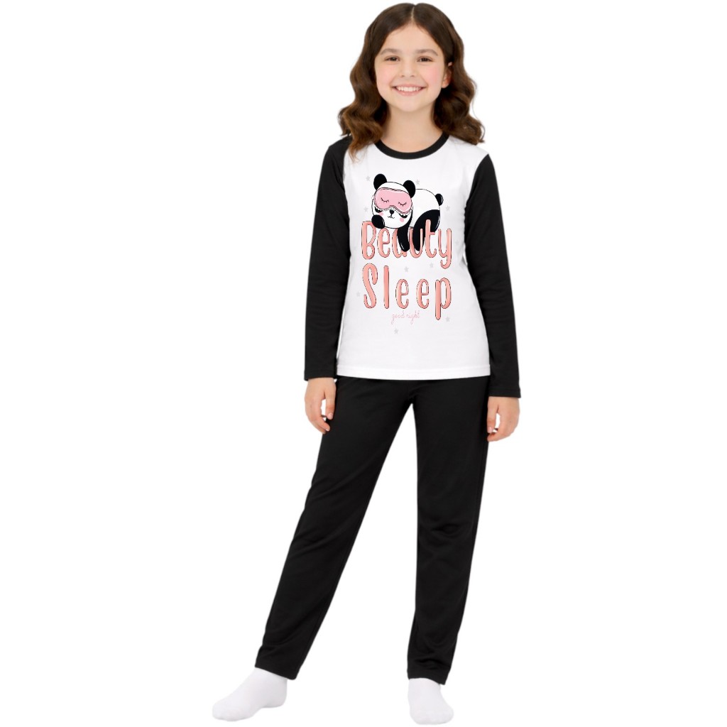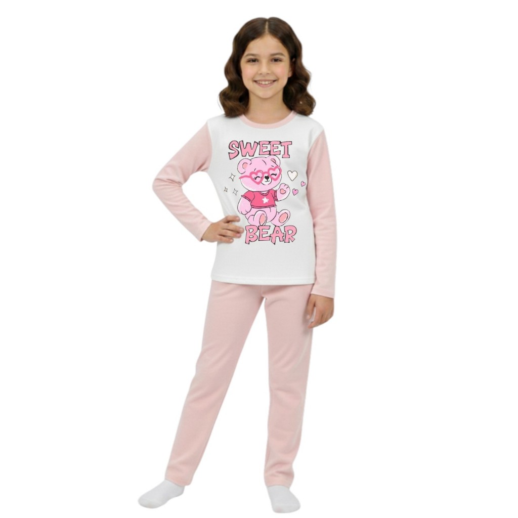 Pijama longo femenino infantil malha pp moda frio
