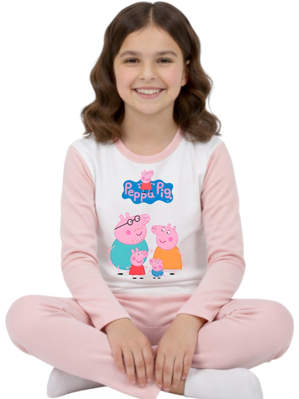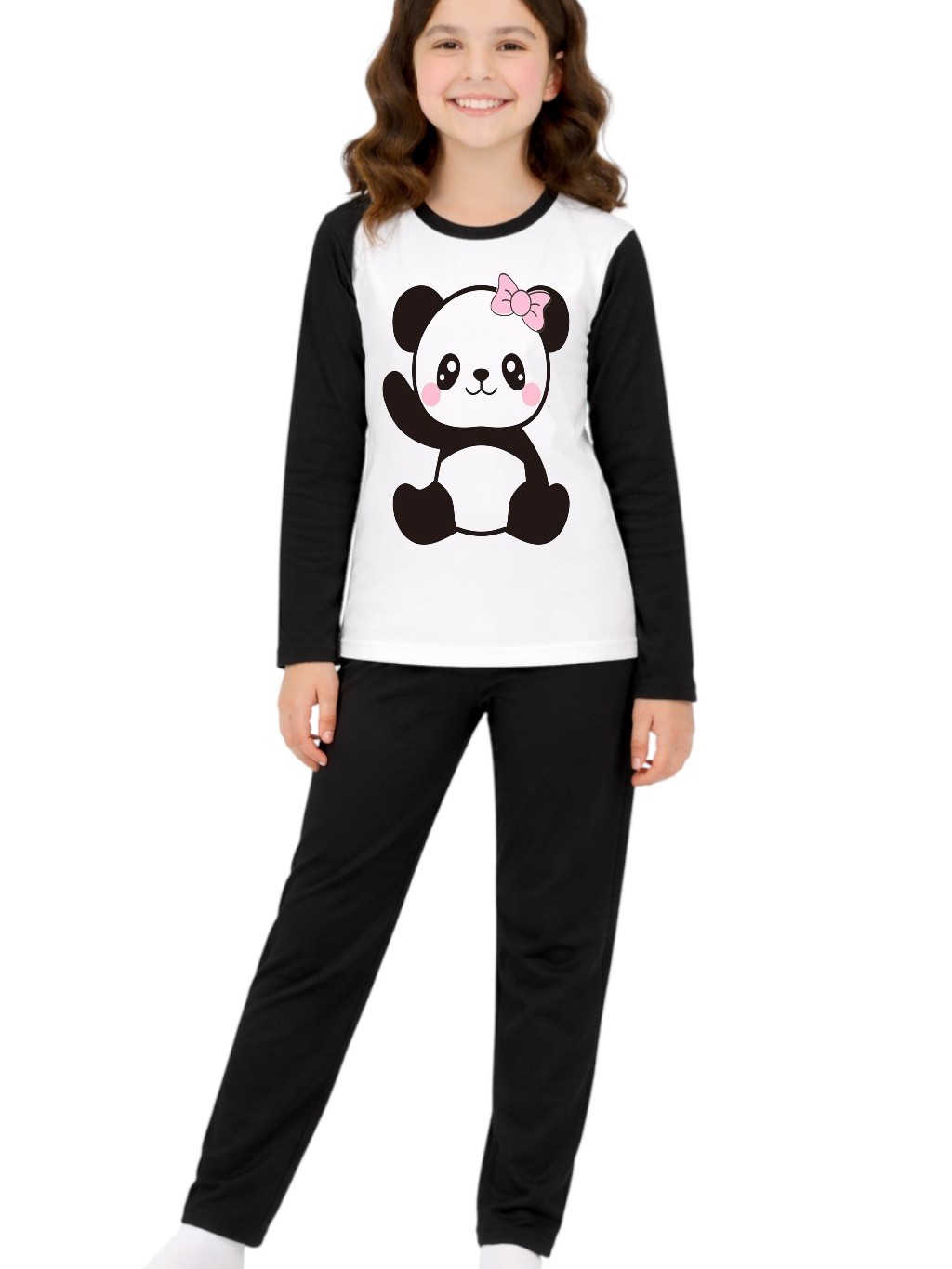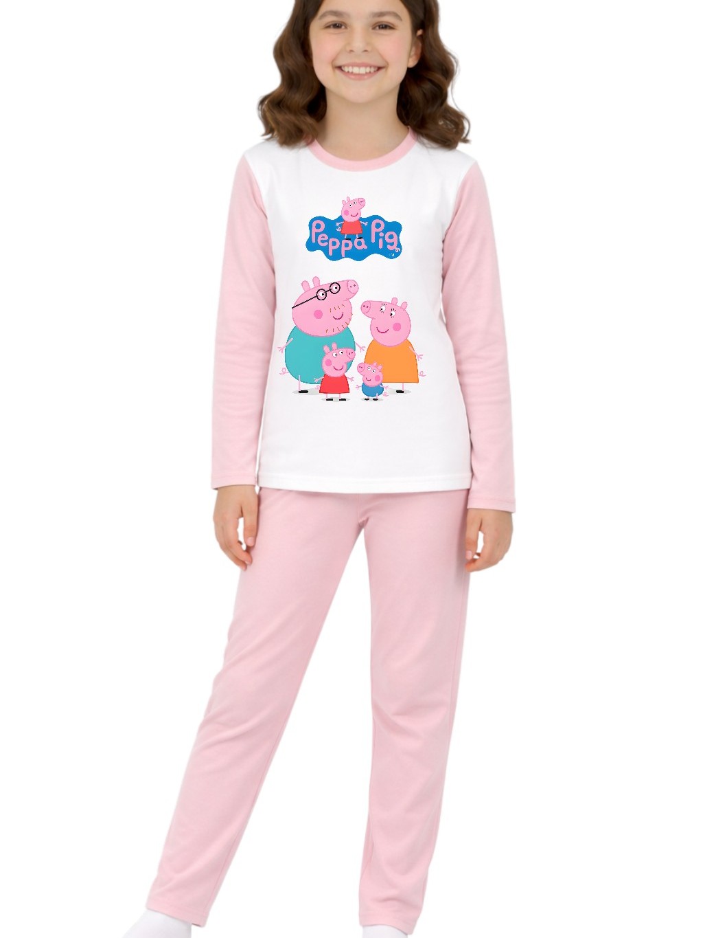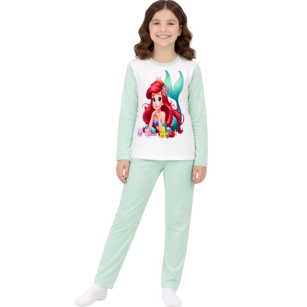 Pijama longo femenino infantil malha pp moda frio