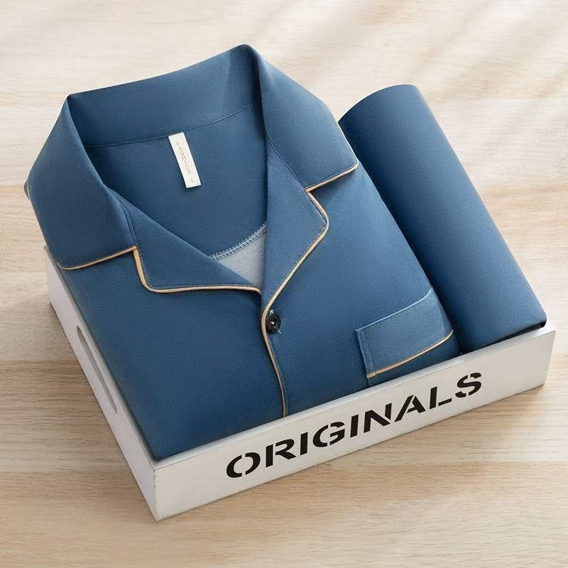 Pijama masculino de imitação de algodão de alta qualidade, manga comprida, primavera, outono, idade, Casual, médio-idoso