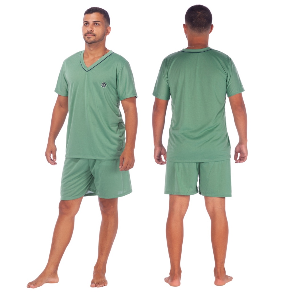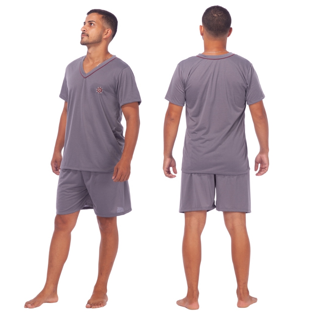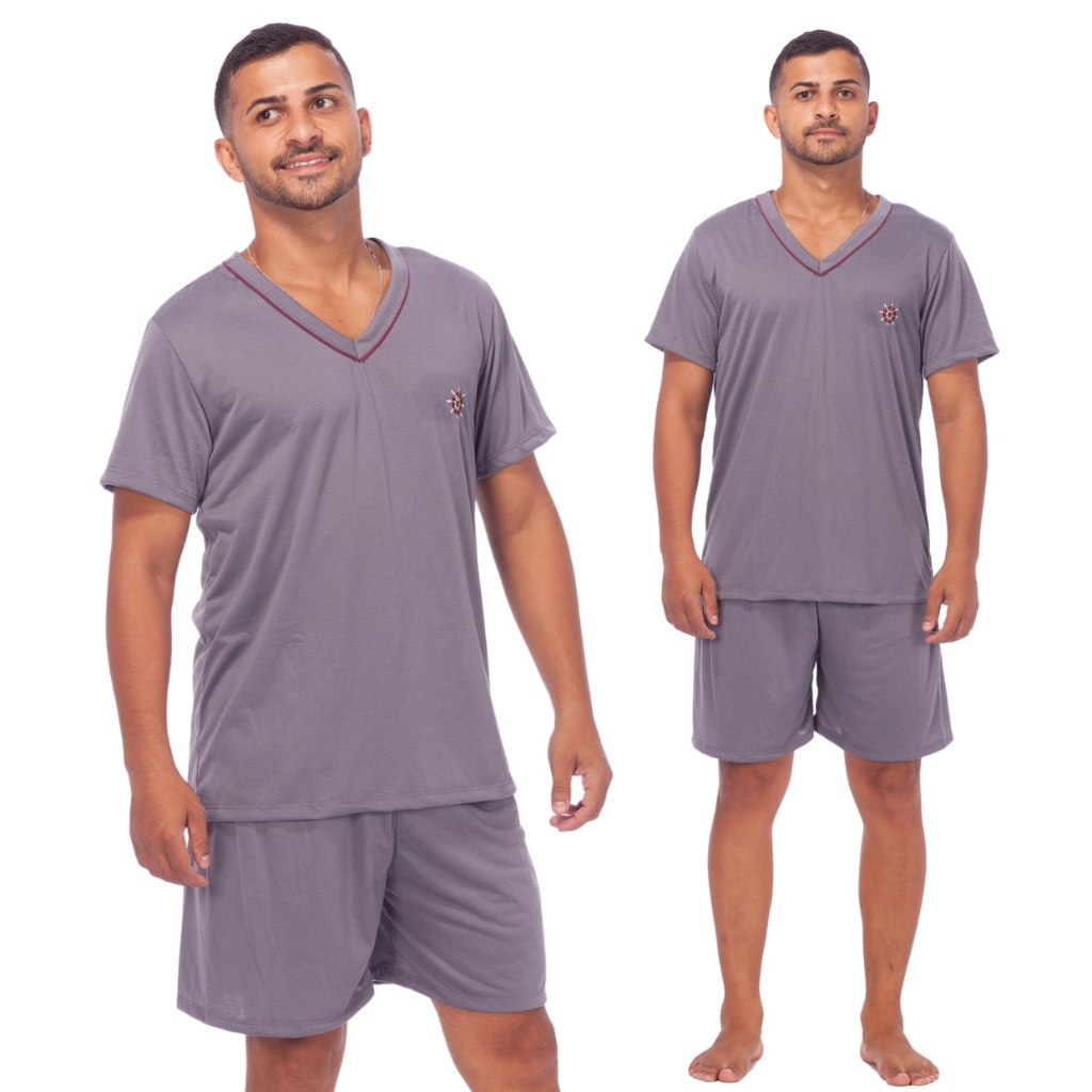 Pijamas Lisos Masculino Manga Curta Short Linha Noite Adulto Verão