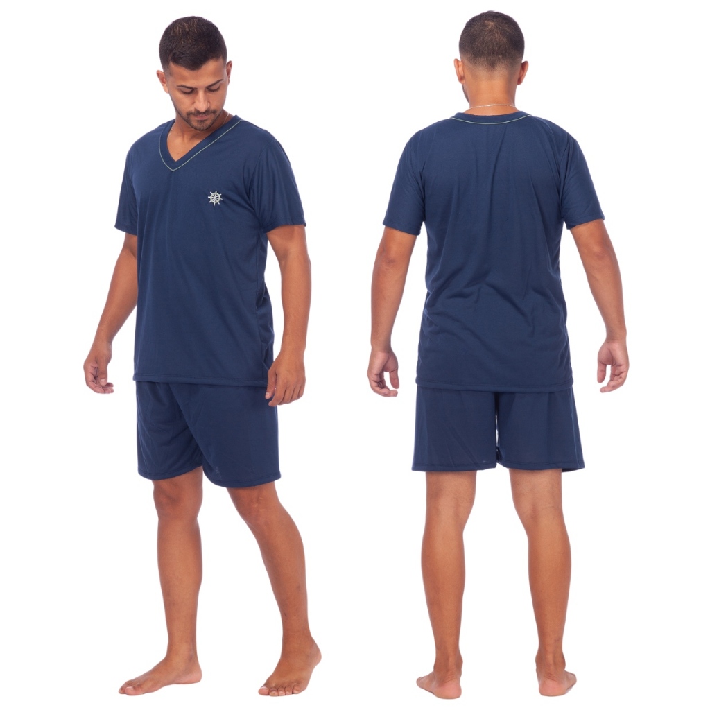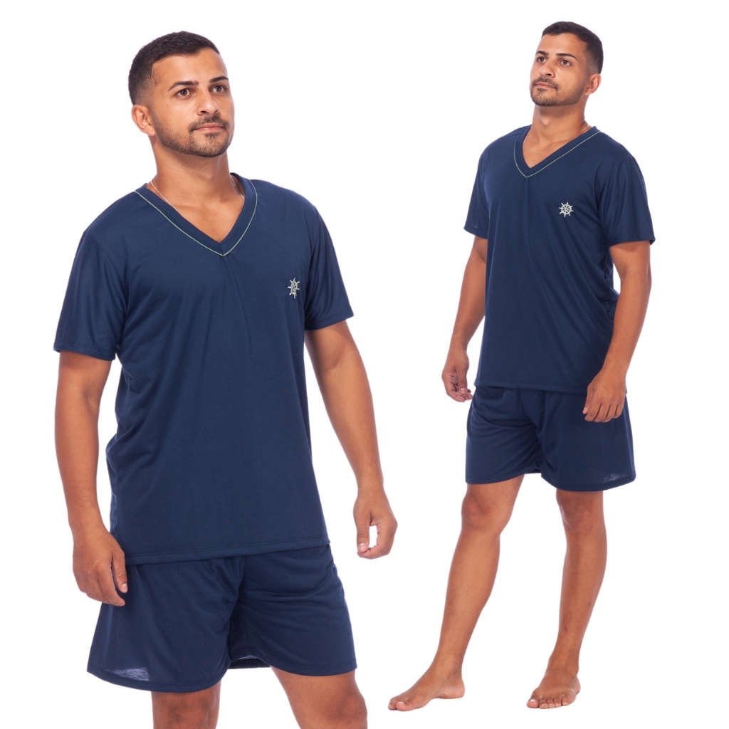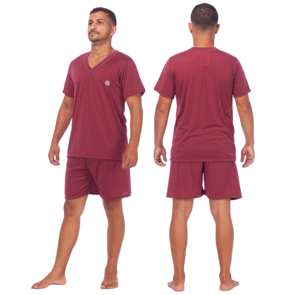 Pijamas Lisos Masculino Manga Curta Short Linha Noite Adulto Verão