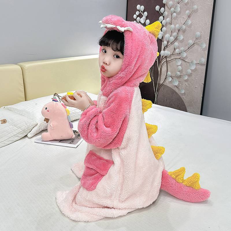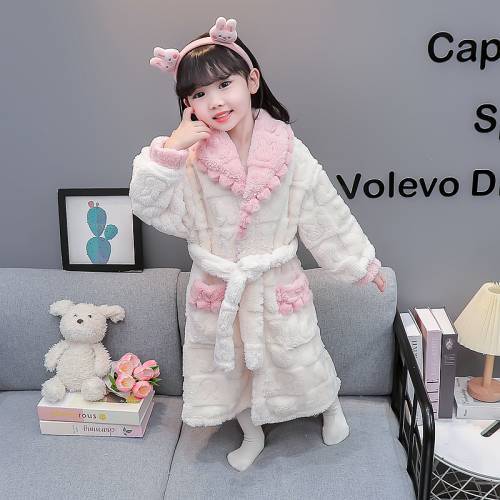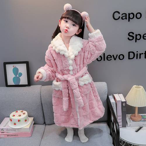 Pijamas Para Meninas Outono E Inverno Flanela Quente Camisola Dos Desenhos Animados Coral Velo Roupão De Das Crianças 4t29