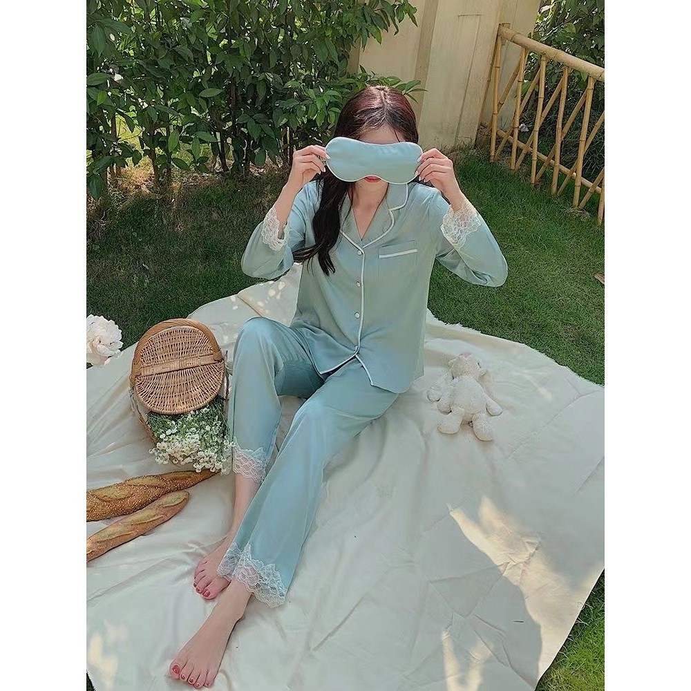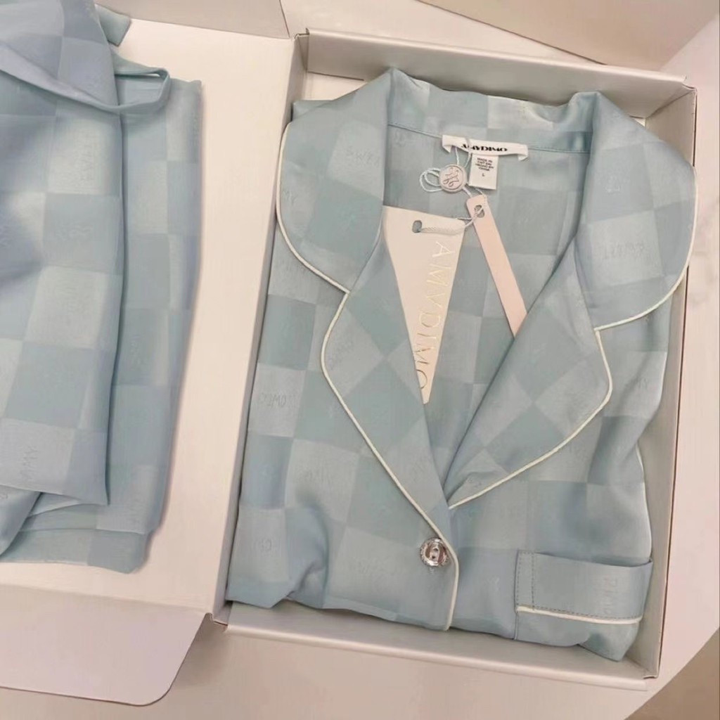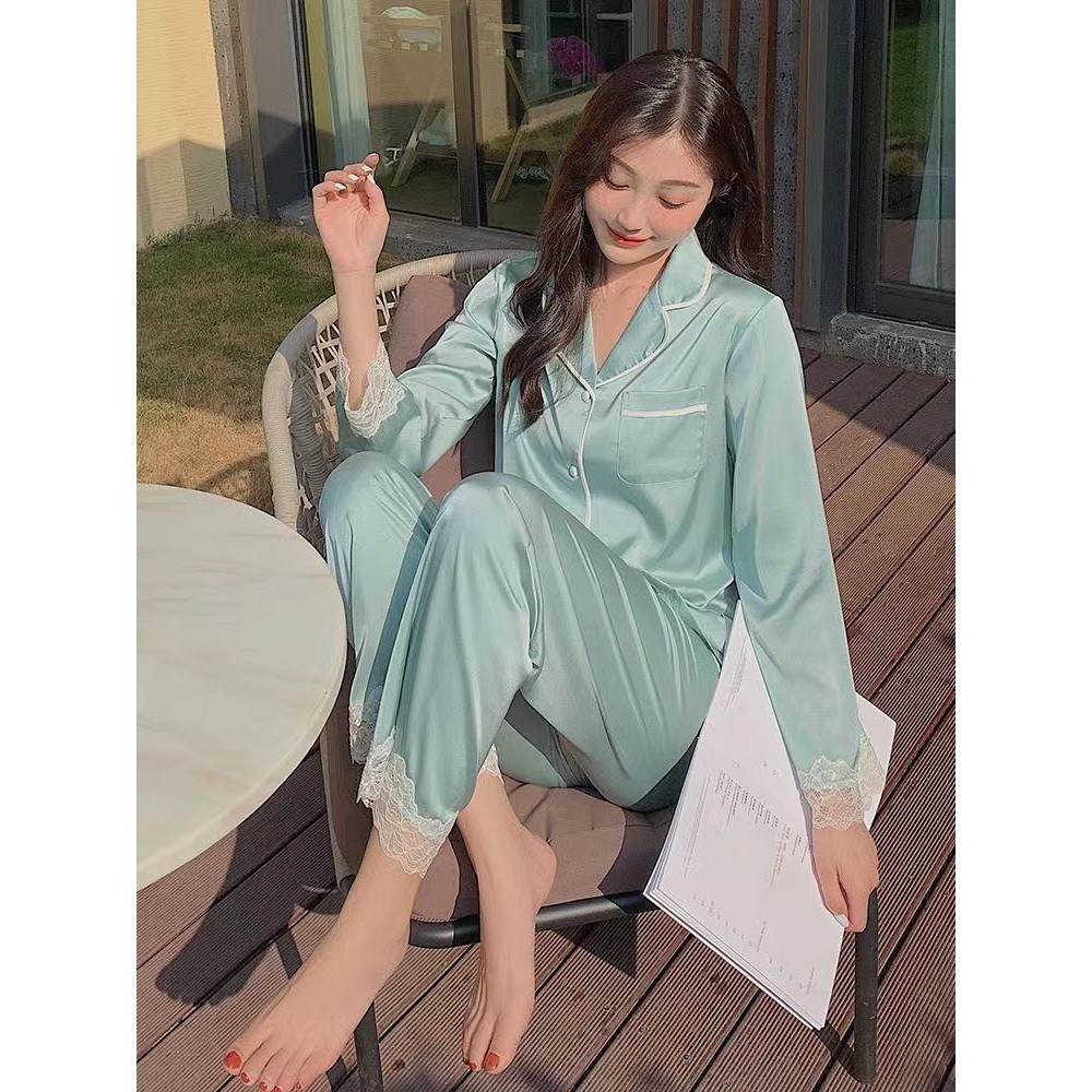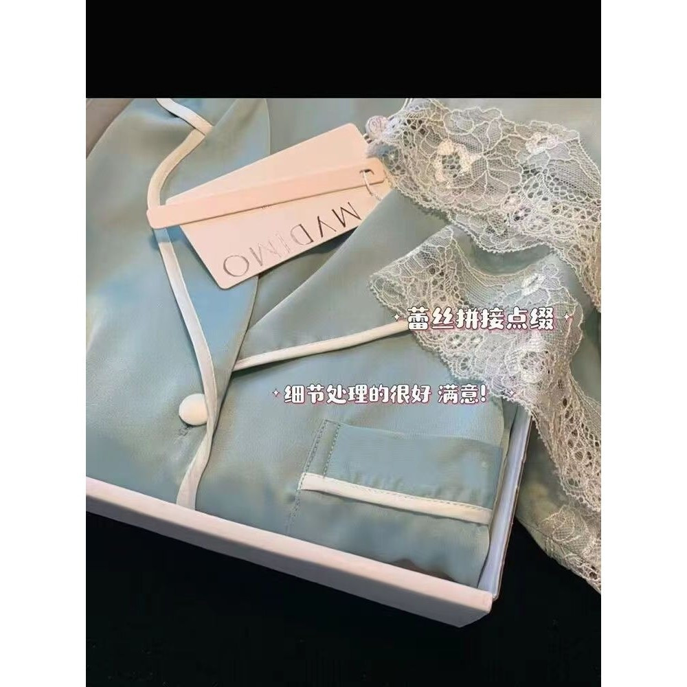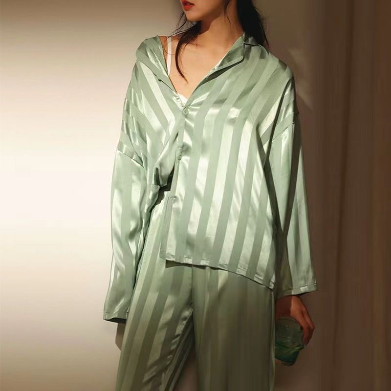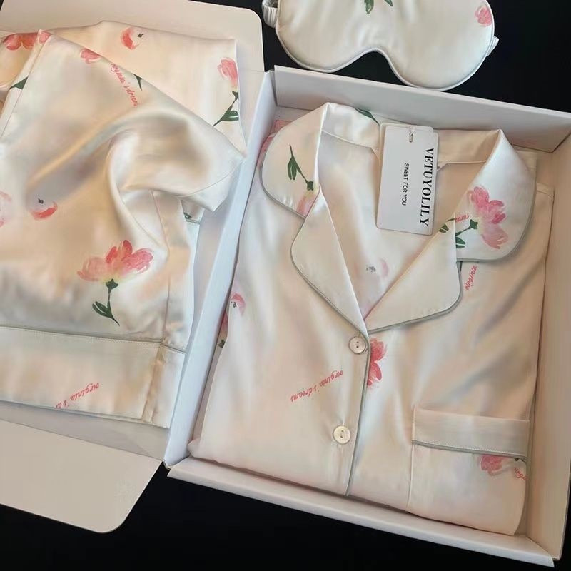 Pijamas de Seda Gelada para Mulheres com Mangas de Compressão Conjunto de Seda Estilo Fino para Uso Diurno