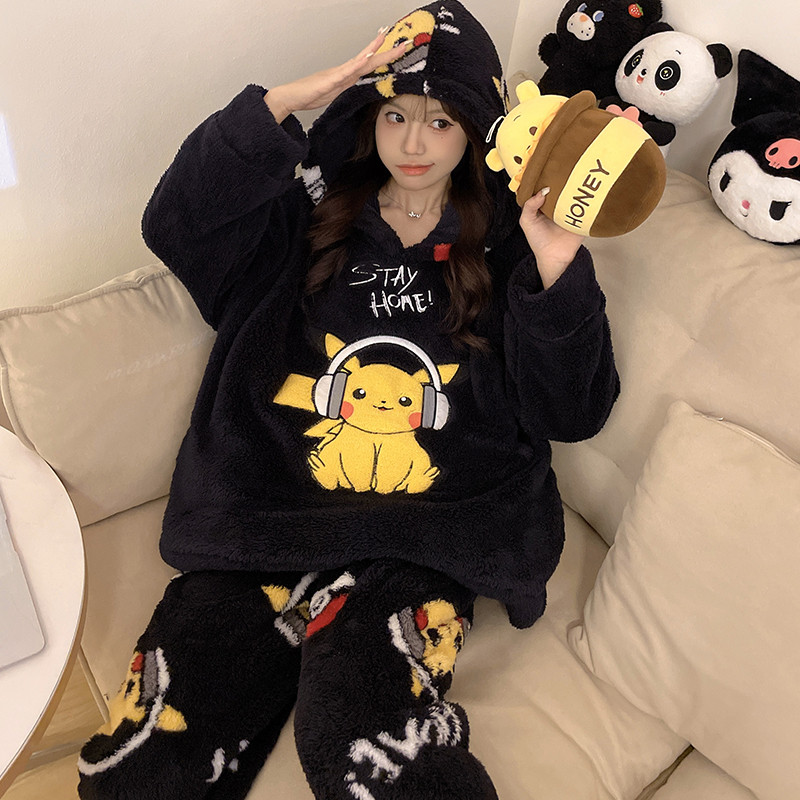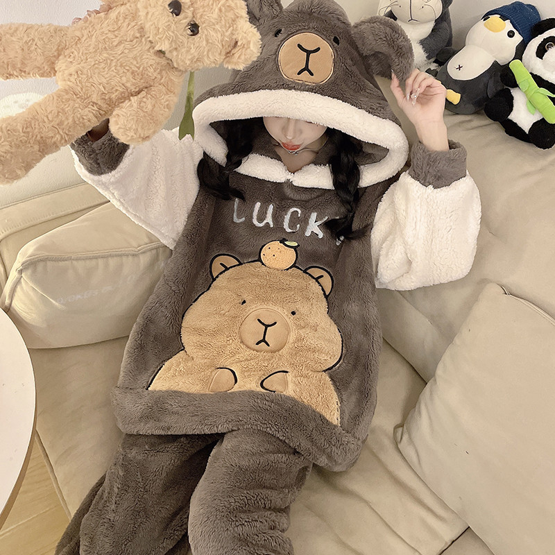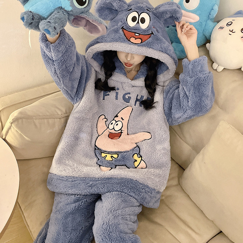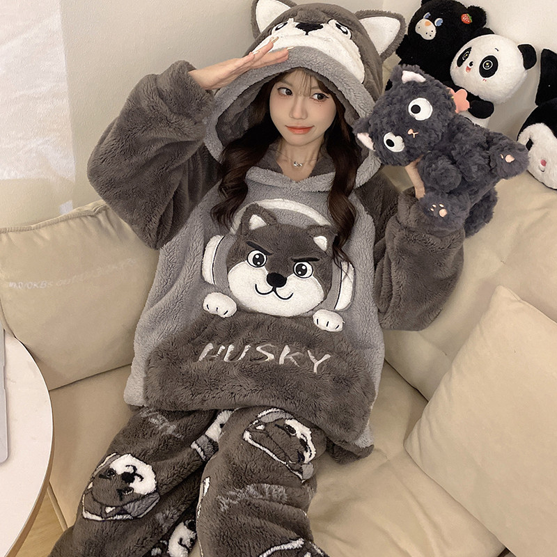Pijamas de lã Coral feminino Plus Size 2025 novo estilo outono inverno forro de lã engrossado grandes crianças bonito jú