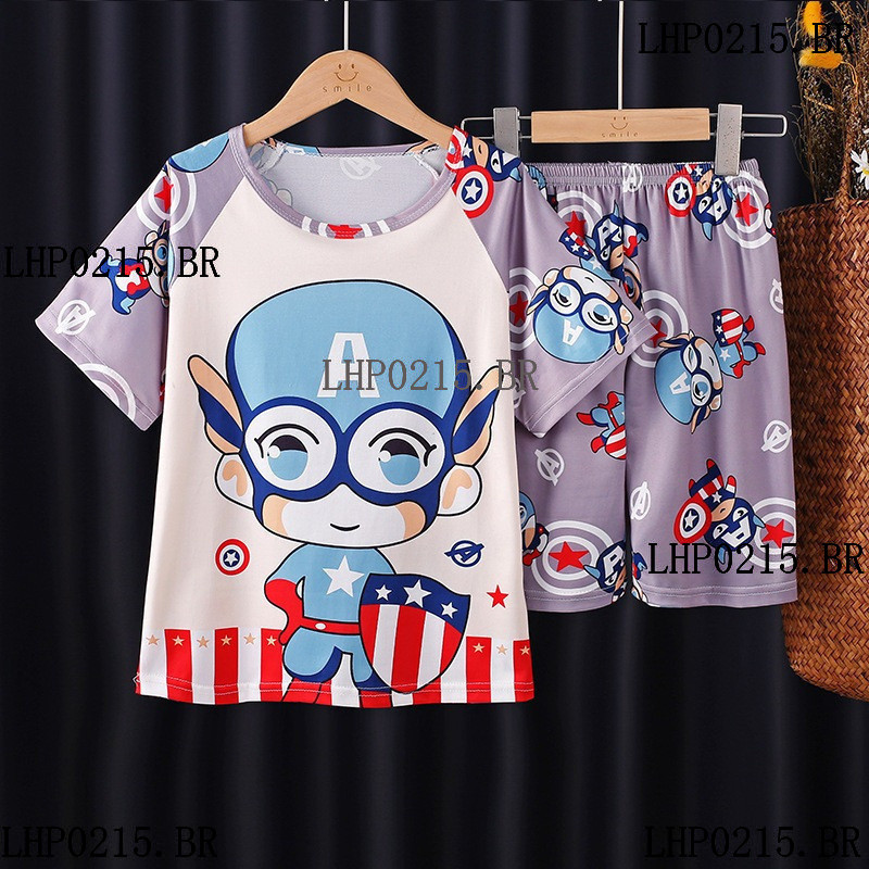 Pijamas infantis de 2 a 14 anos, meninos, verão, moda Casual, manga curta, roupa de dormir