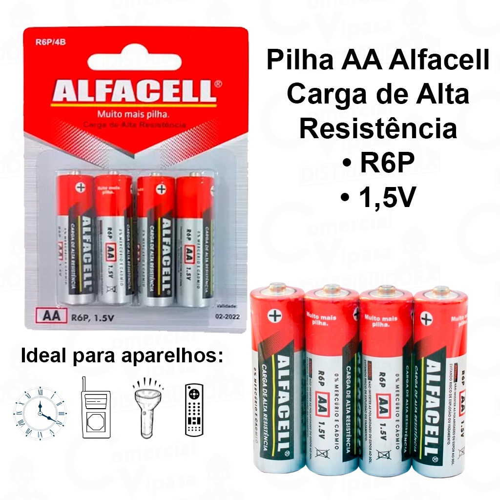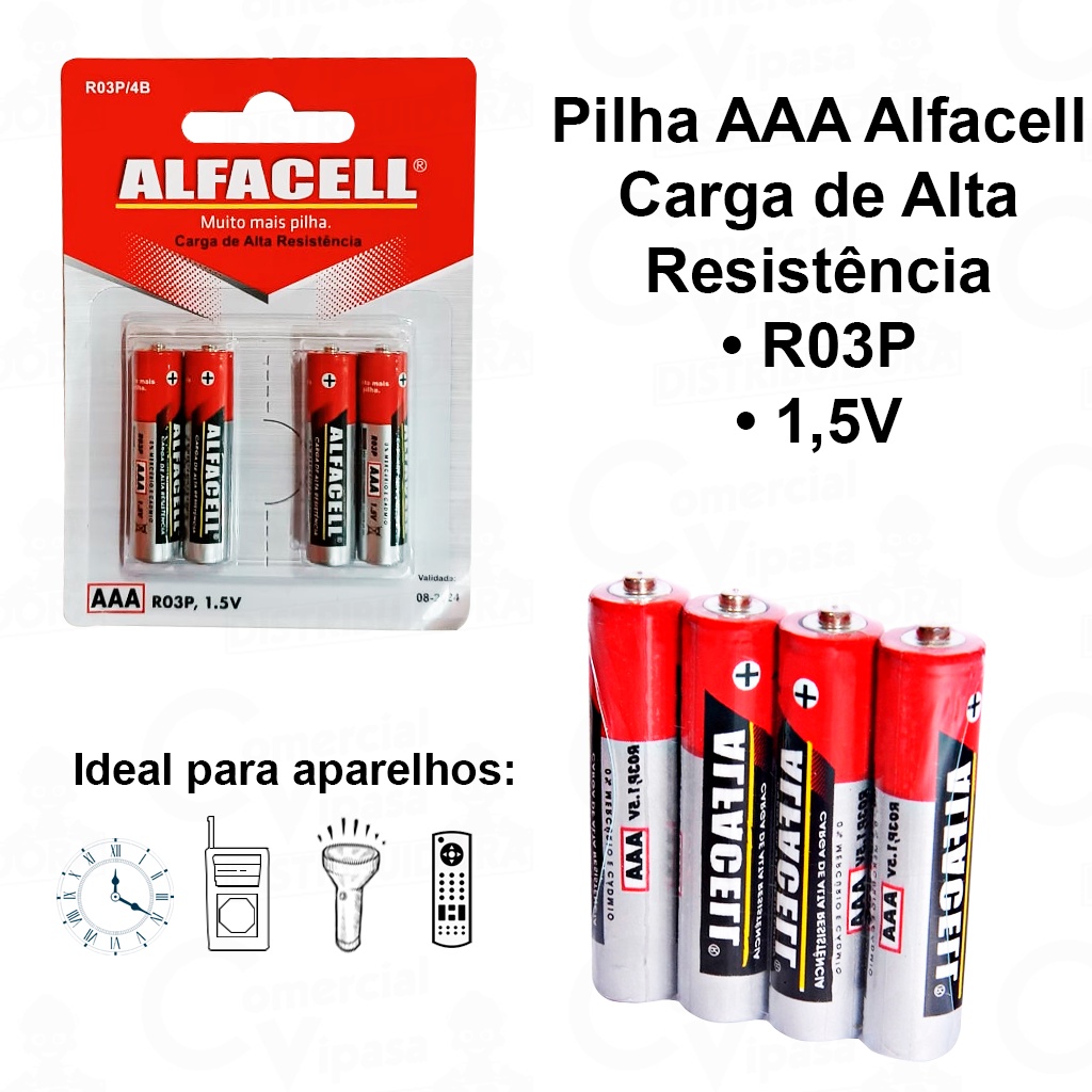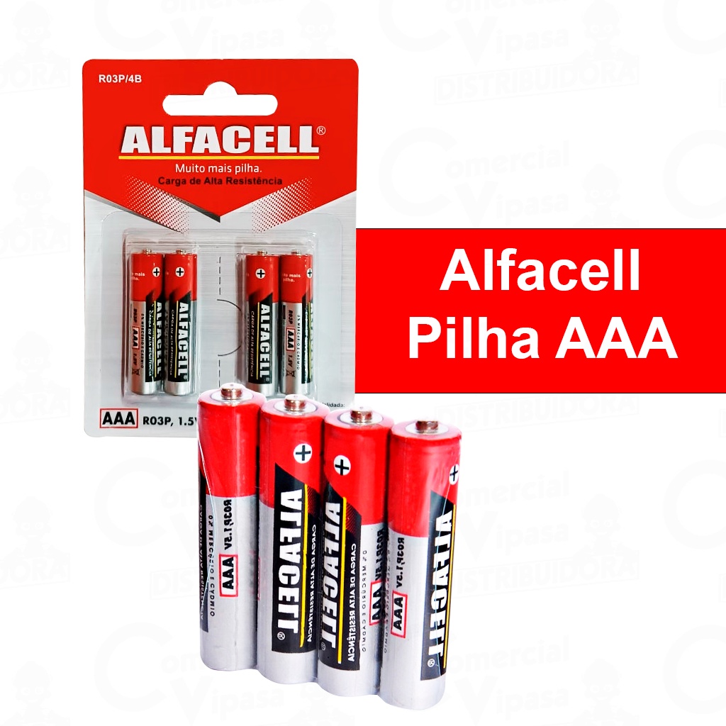 Pilha AA Comum Pilhas AAA Palito 1.5V 4 Unidades Carga de Alta Resistência Alfacell