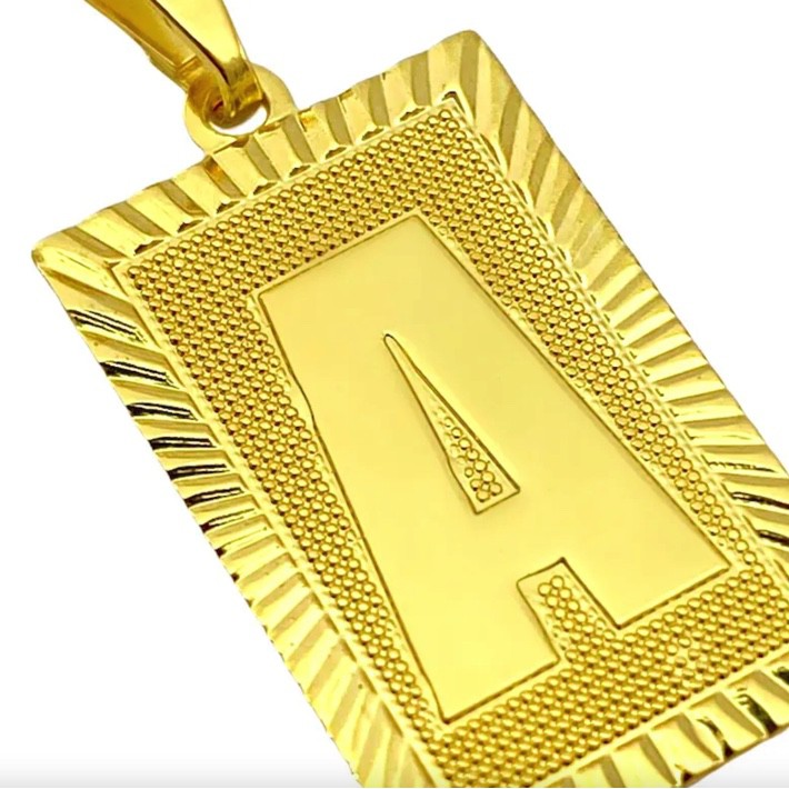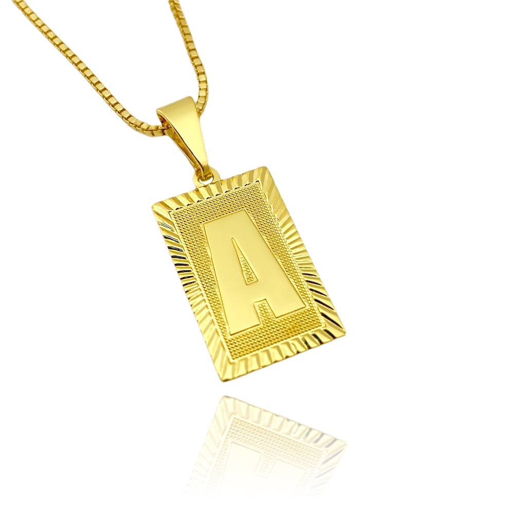 Pingente De Letra Quadrado Escolha Sua Letra Banhado a Ouro 24k Inicial