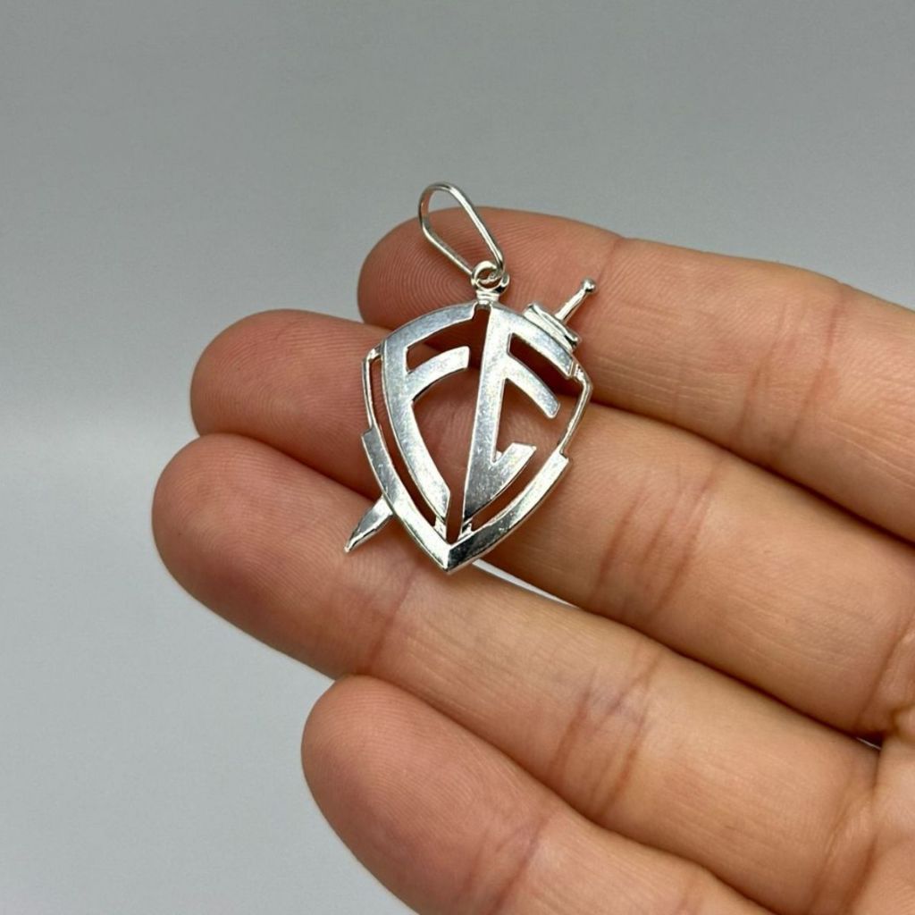 Pingente Escudo Fé - 21mm x 36mm - Prata 925