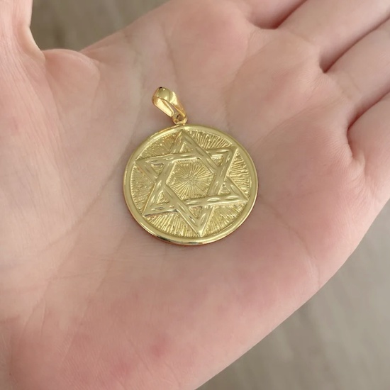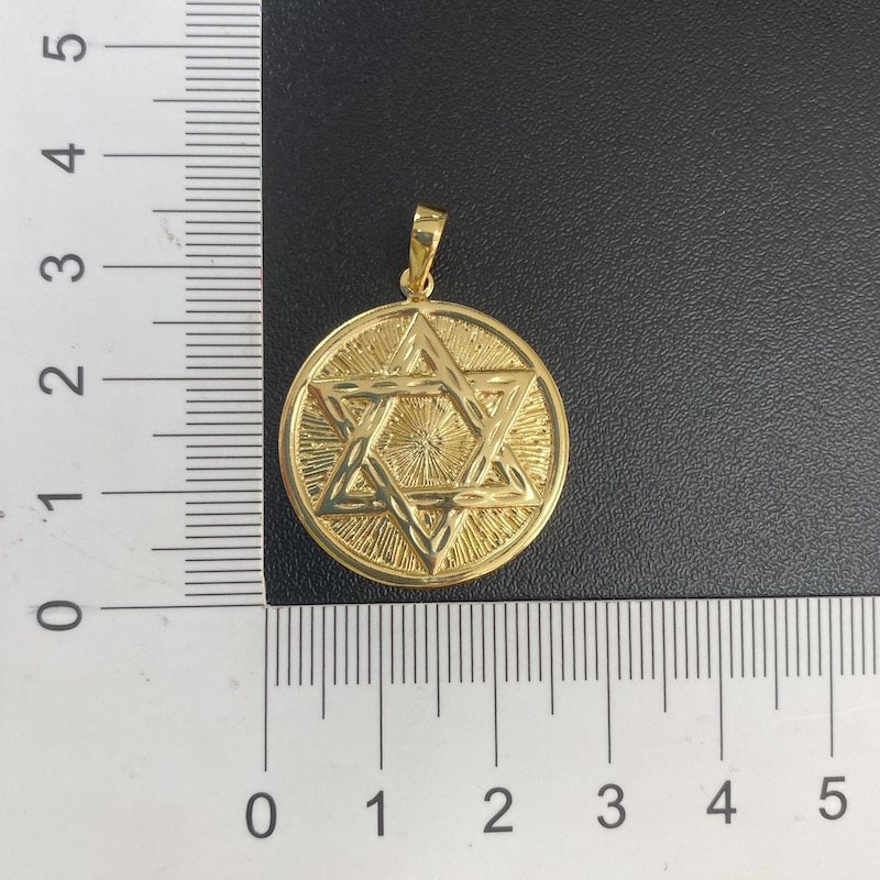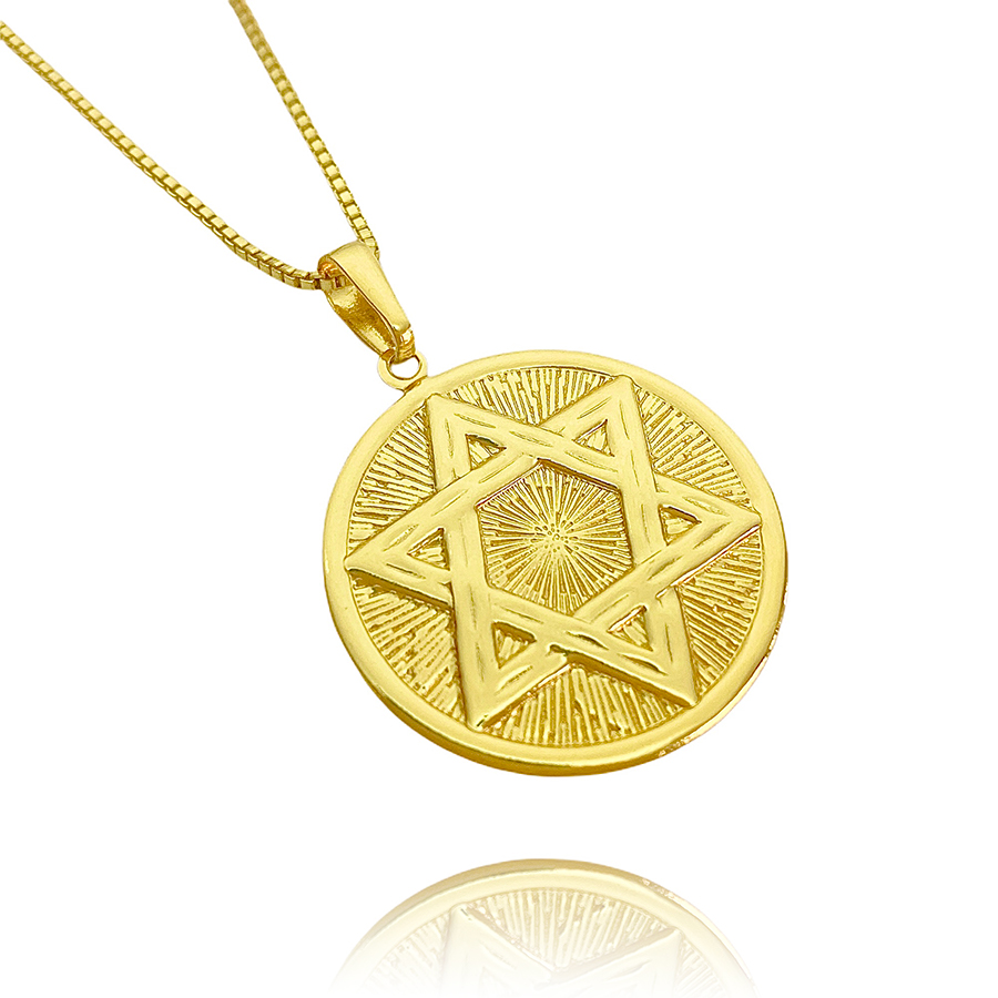 Pingente Masculino de Ouro Estrela de Davi Relevo Em 3D Banhado a Ouro 24k
