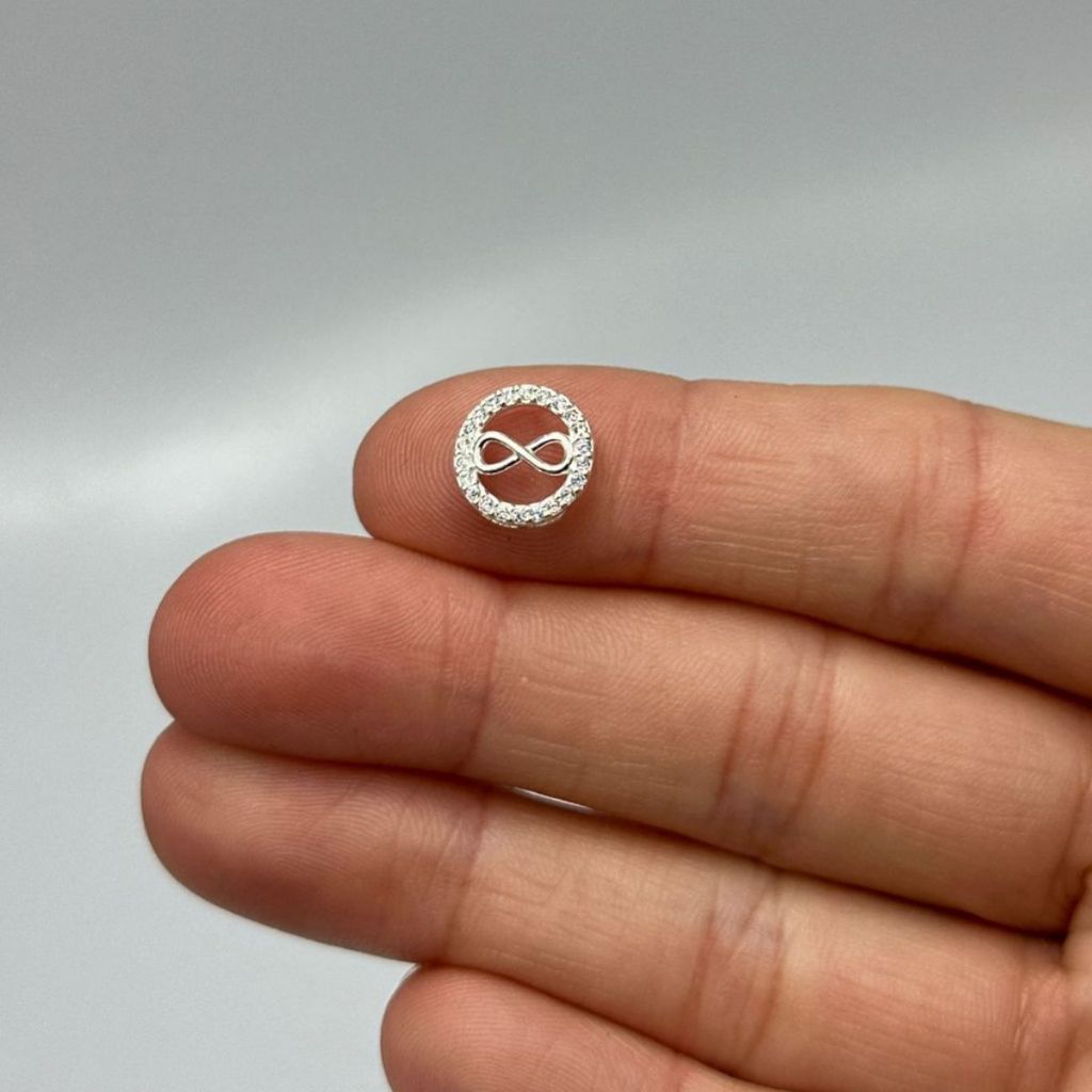 Pingente Passante de Prata 925 Círculo com Infinito e Zircônias Cravejada