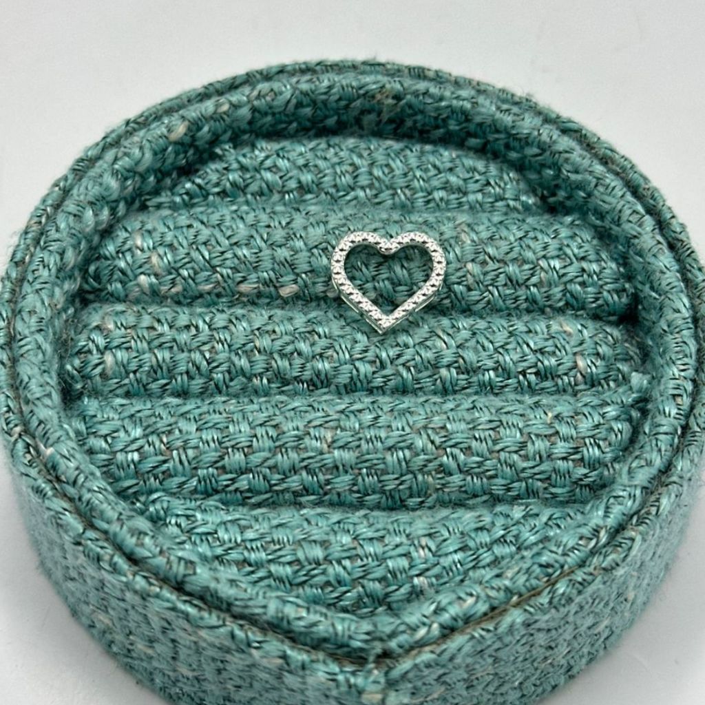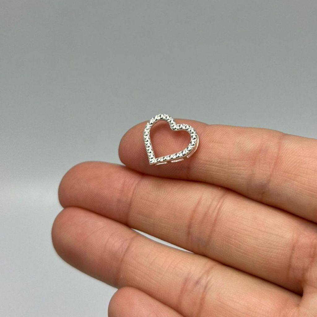 Pingente Passante de Prata 925 Coração Vazado e com Bolinhas