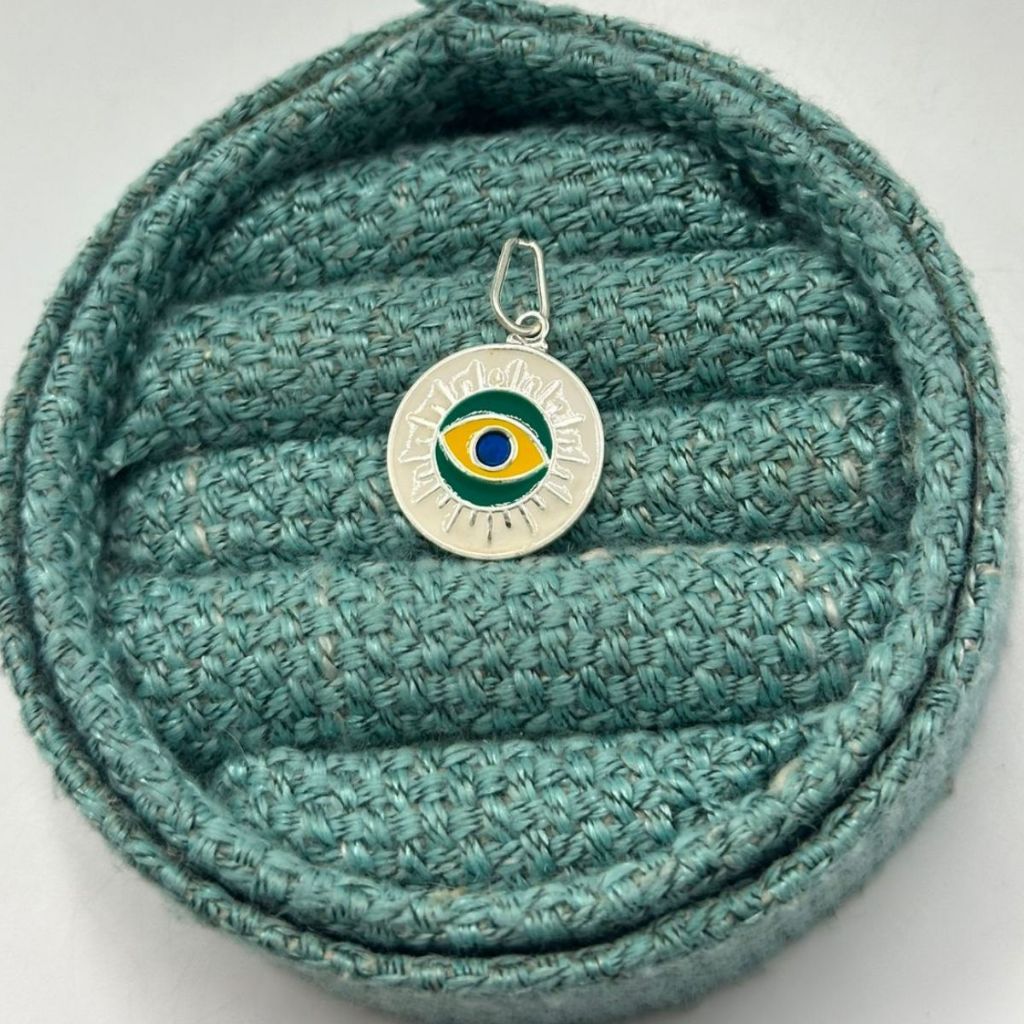 Pingente Prata 925 Bandeira Brasil Olho Grego / Copa do mundo / Torcedor