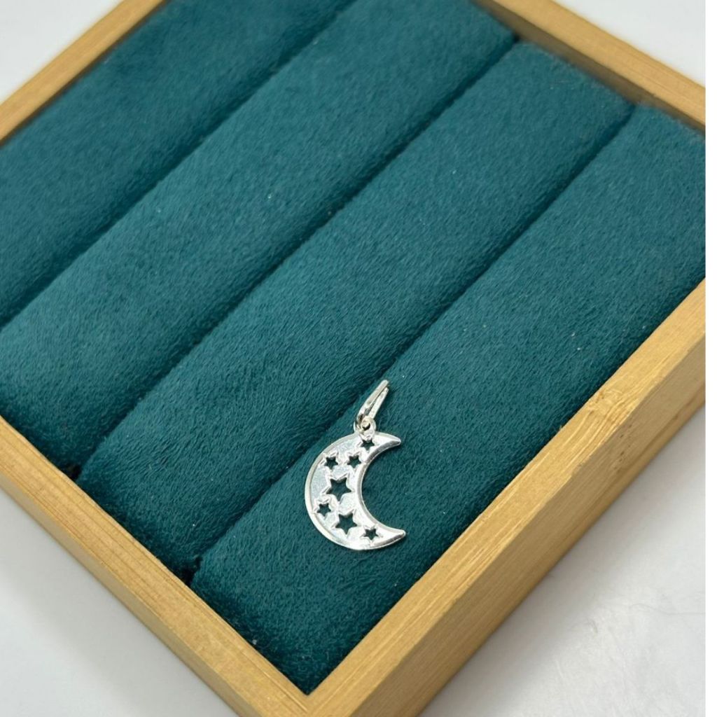 Pingente Prata 925 Lua com Estrelas Vazadas
