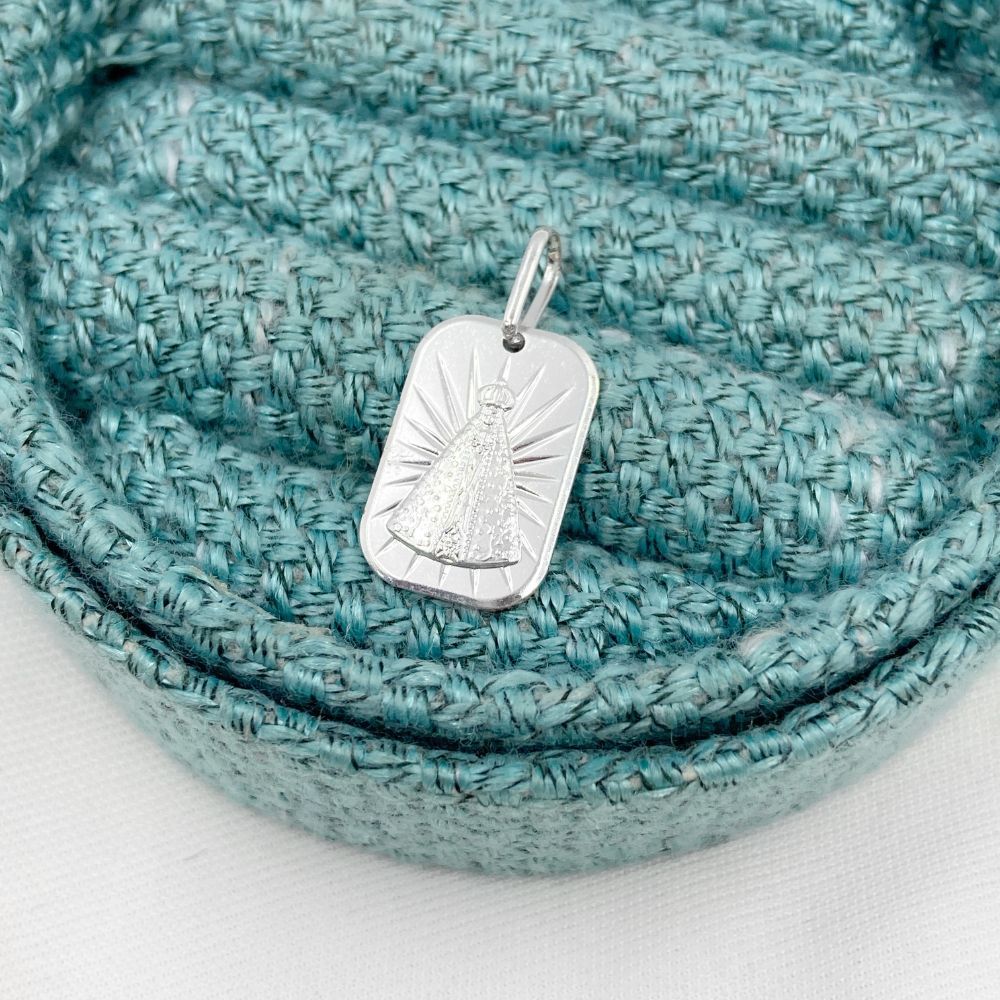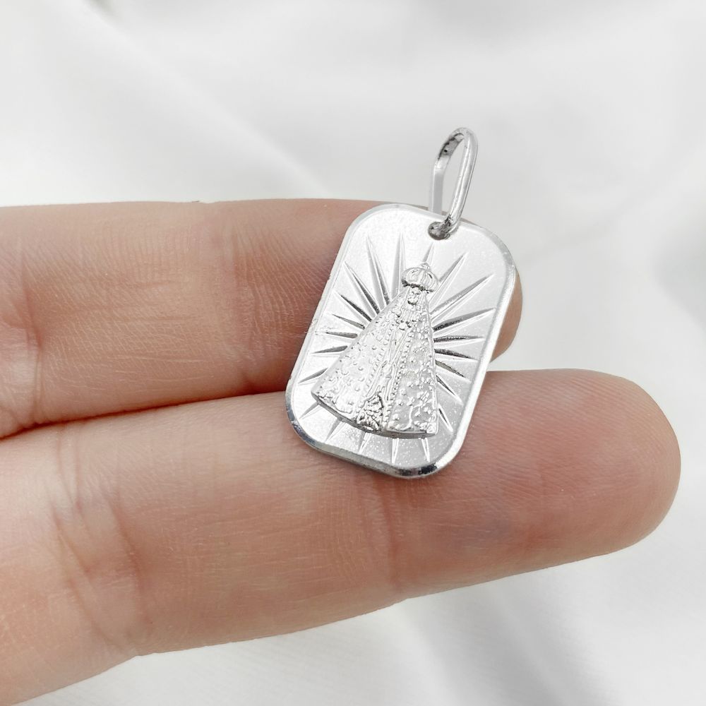 Pingente Prata 925 Placa Nossa Senhora Aparecida Média