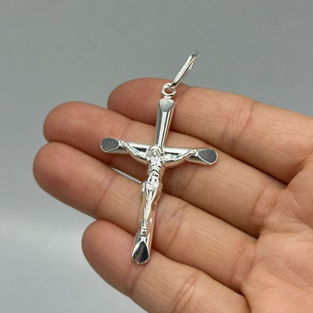 Pingente cruz com cristo crucifixo grande 55mm prata 925