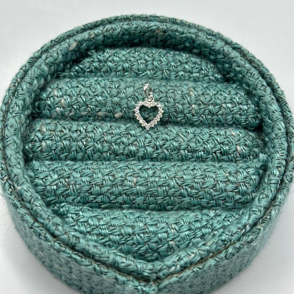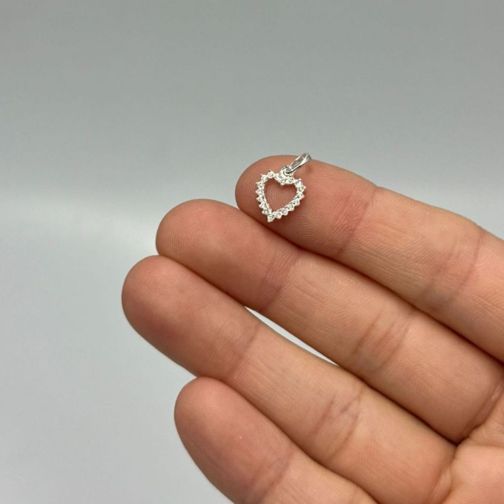 Pingente de Prata 925 Coração Vazado com Zircônias Cravejadas