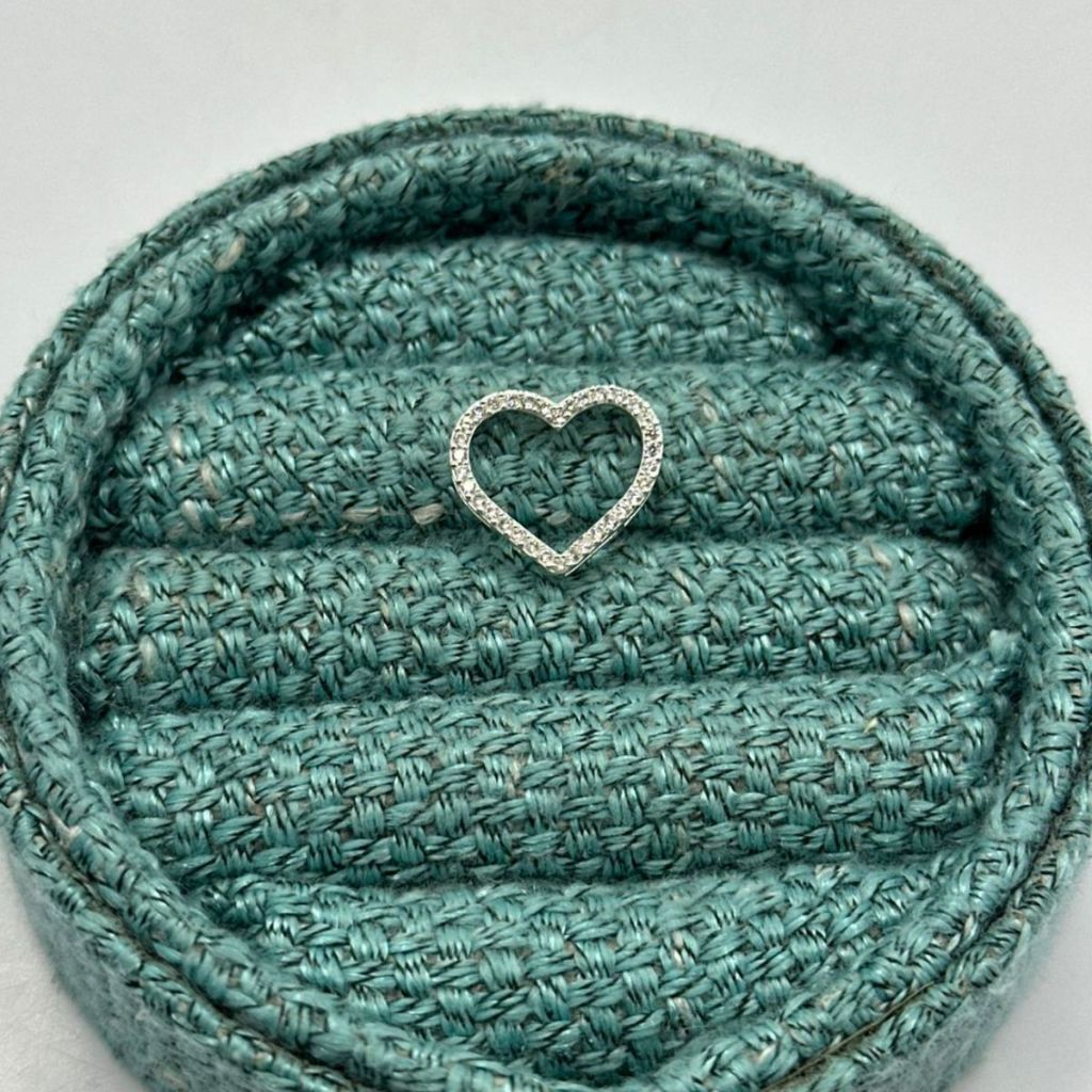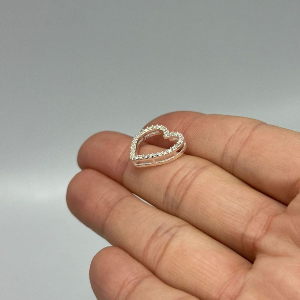 Pingente de Prata 925 Passante Coração Vazado com Zircônias