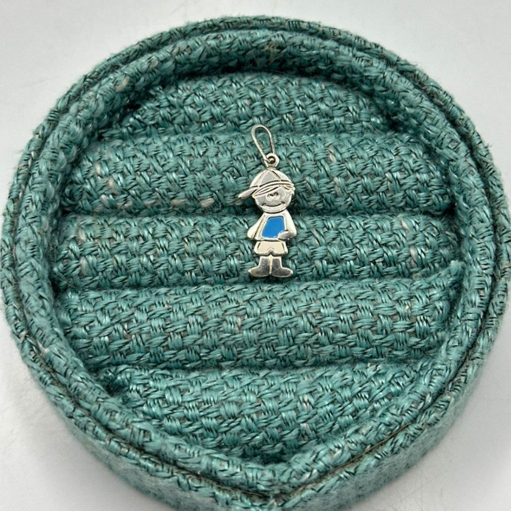 Pingente menino camiseta azul prata 925