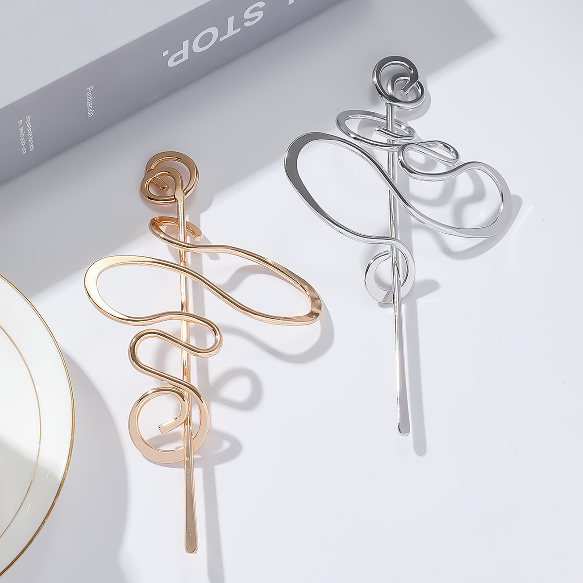 Pino De Cabelo Torcido De Metal , Grande Grampo Curvo Irregular Para Mulheres
