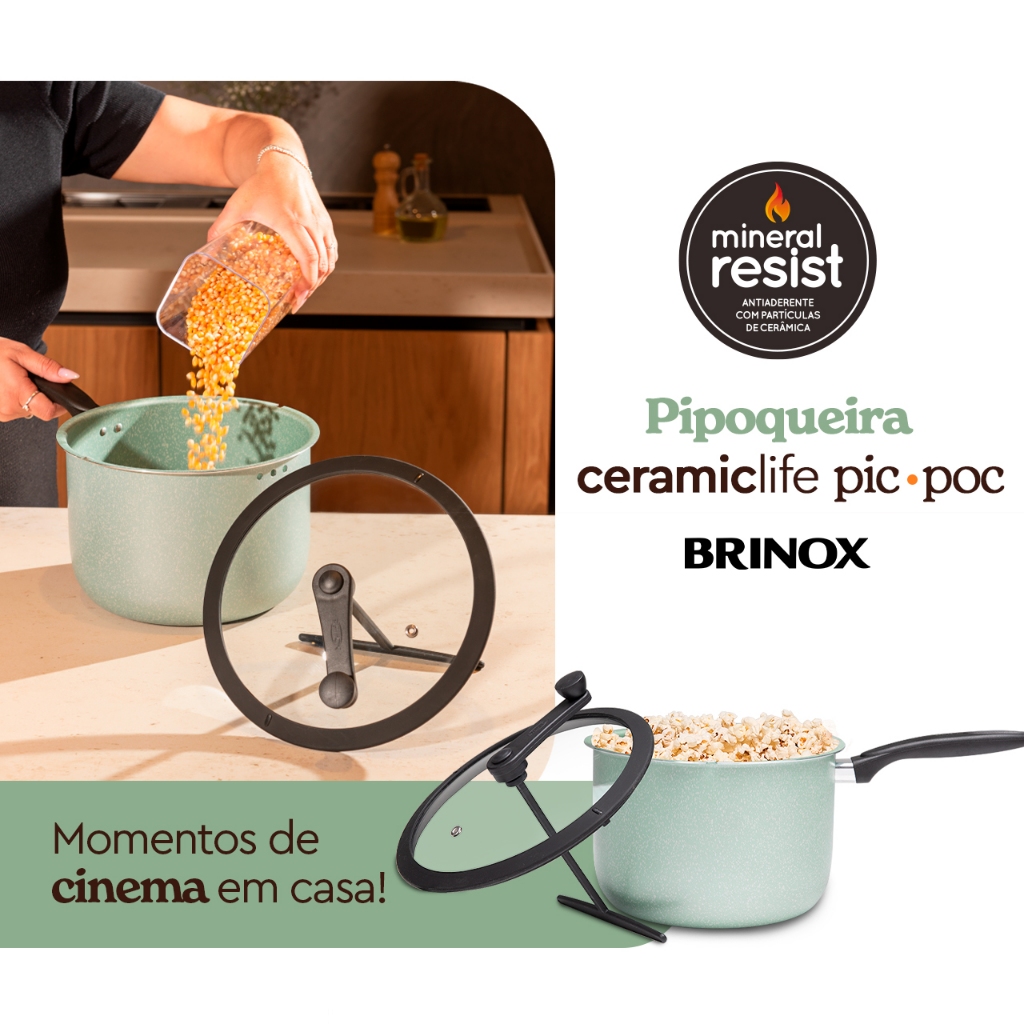 Pipoqueira Pic Poc Ceramic Life Brinox 22cm 5,5L Verde