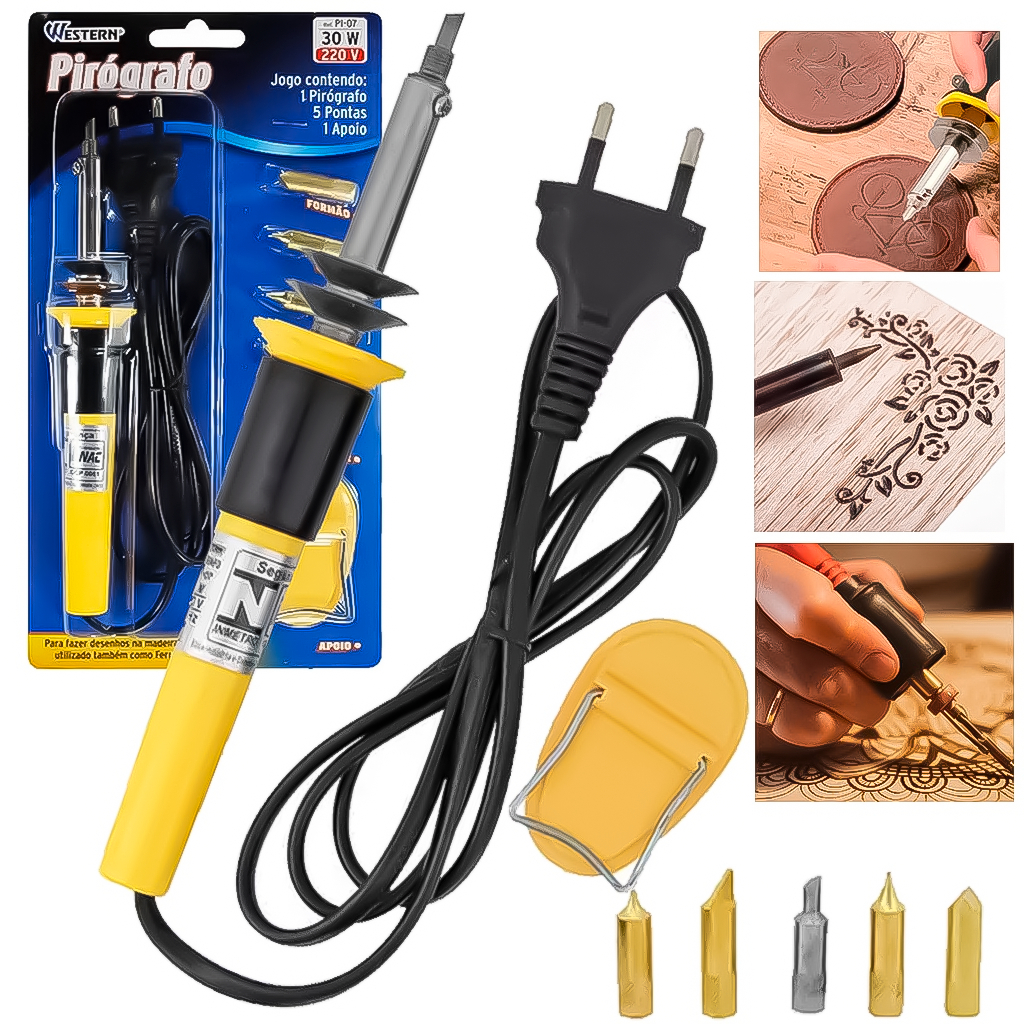 Pirografo Gravador E Soldador Grava Madeira Couro 110v 220v Doméstico E Profissional