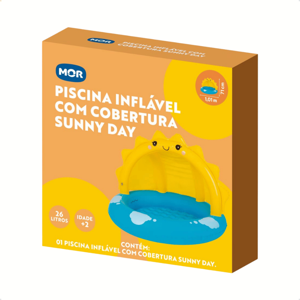 Piscina Infantil Inflável Com Cobertura Mor Sunny Day 26L Piscina Bebê Proteção para Sol
