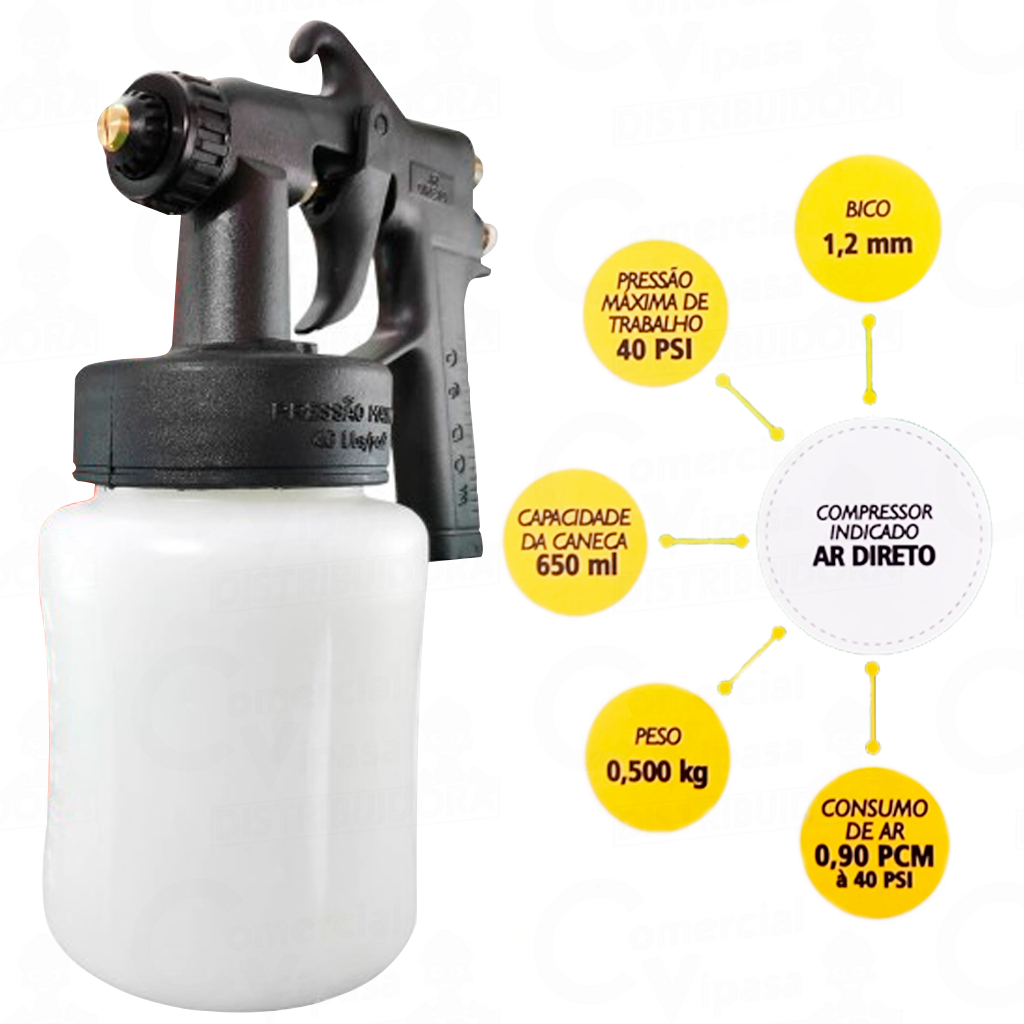 Pistola De Pintura Ar Direto 650ML Profissional + Bicos Espalhador Leque Redondo Modelo Arprex