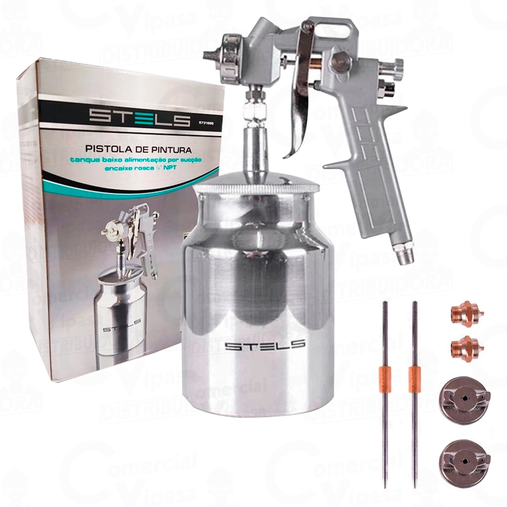 Pistola De Pintura Tanque Baixo De Sucção Com Caneca 1L Stels Alumínio Profissional