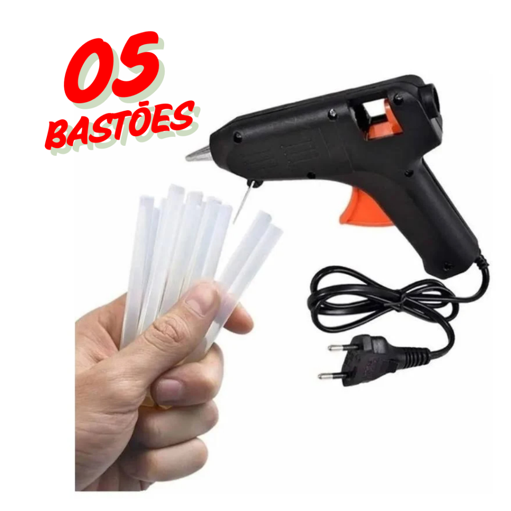 Pistola de Cola Quente Pequena 20W (Bivolt 110V/220V) – Bico de Ferro + 20 Bastões de Cola