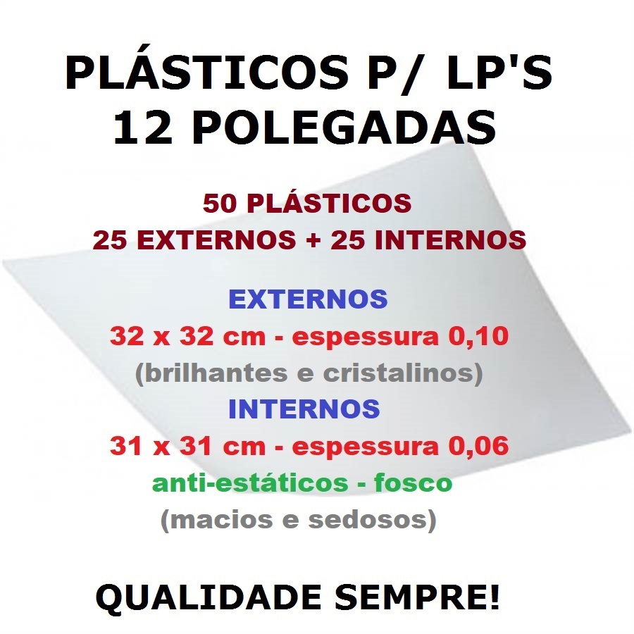 Plásticos P/ Proteção LP Vinil - Capas E Discos - 25 Externos 0,10 Cristal + 25 Internos 0,06
