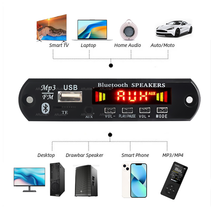 Placa Amplificadora Bluetooth BT 5.0 Subwoofer 80W Módulo De Áudio De Alta Resolução Para Reprodutor De Rádio FM De Carr