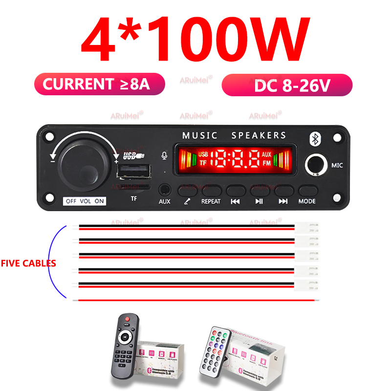 Placa Amplificadora Profissional Bluetooth 5.3 4x100W Alta Potência para Áudio Automotivo e Residencial