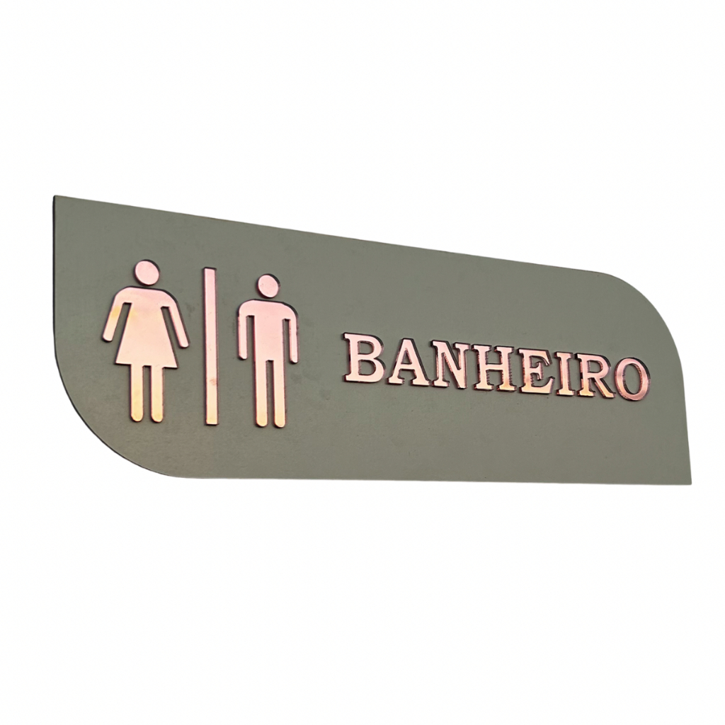 Placa Banheiro Espelhado Sinalização Unissex Decorativa para Porta WC