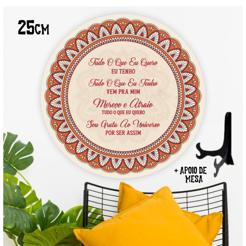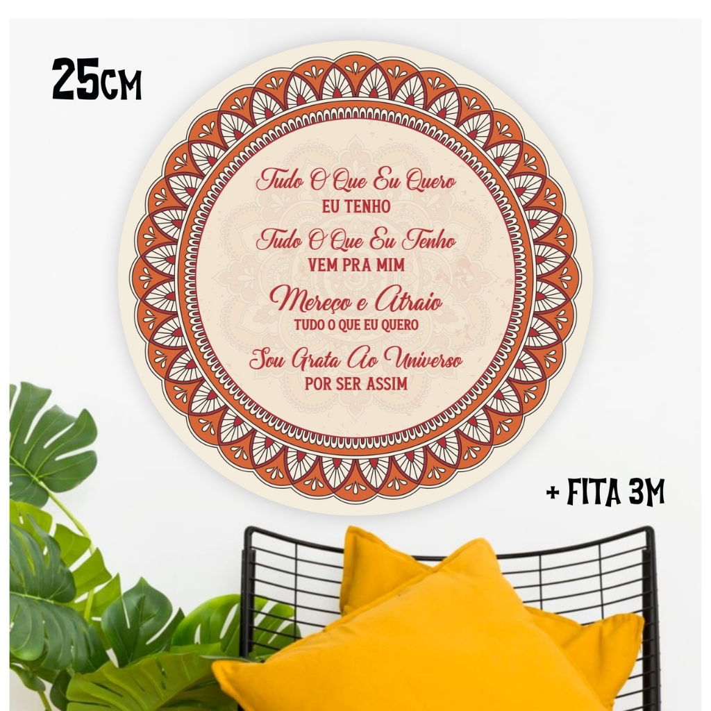 Placa Decor Mantra Tudo o Que eu Quero Vem Pra Mim Cantinho Zen