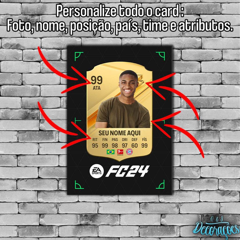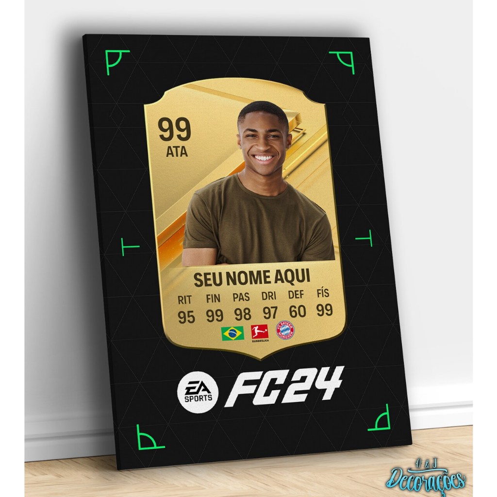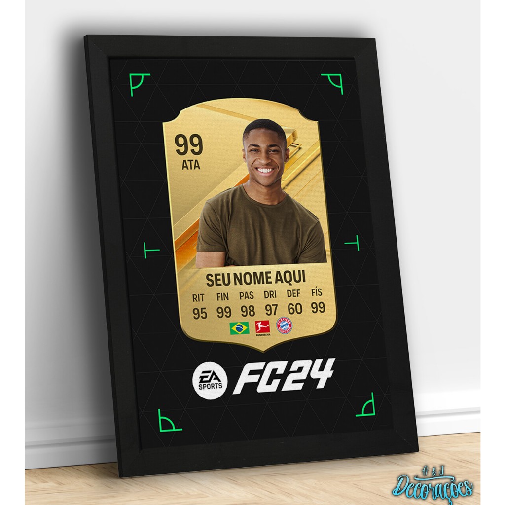 Placa Decorativa Quadro EA FC 24 - FIFA 24 Card Ouro Personalizado Com Sua Foto - Futebol ULT Ultimate Team