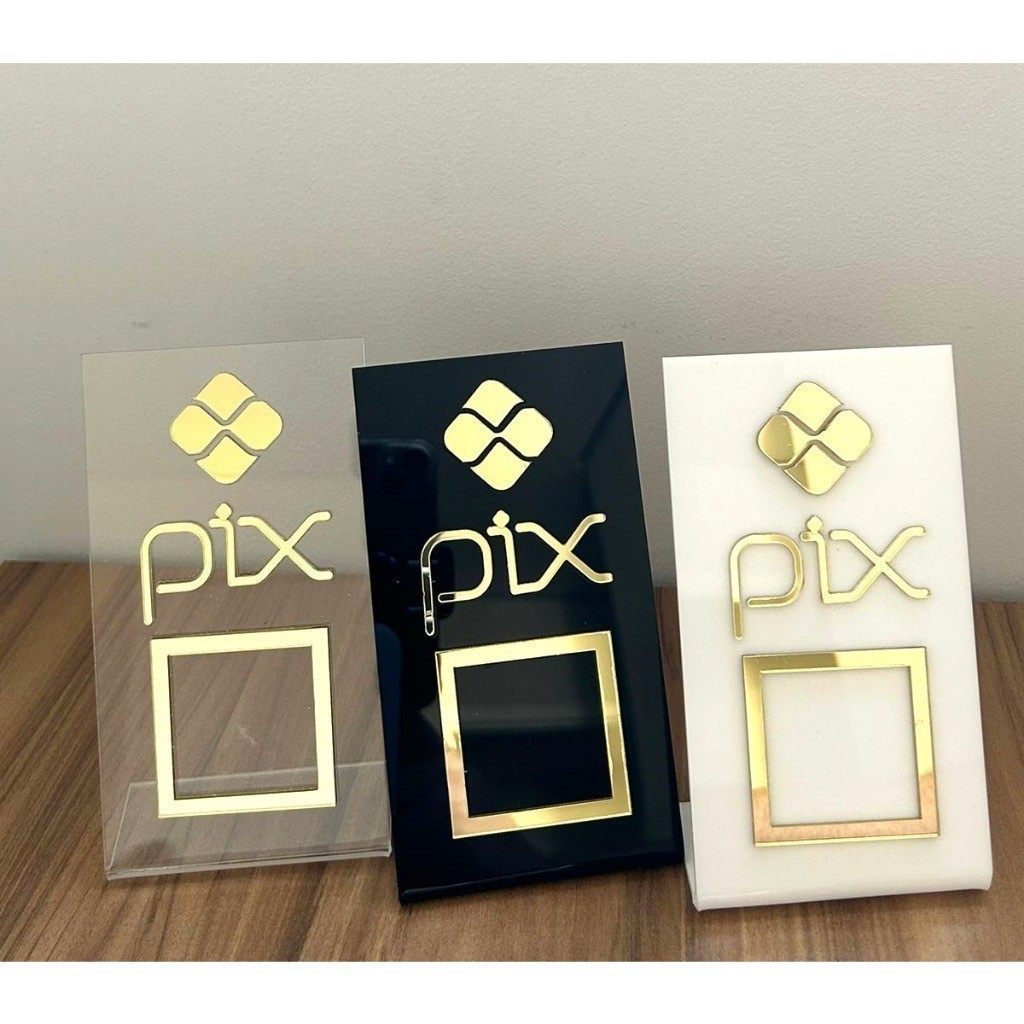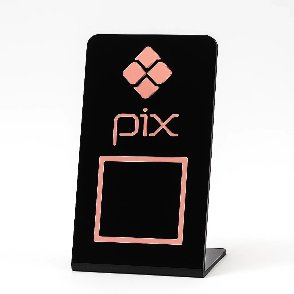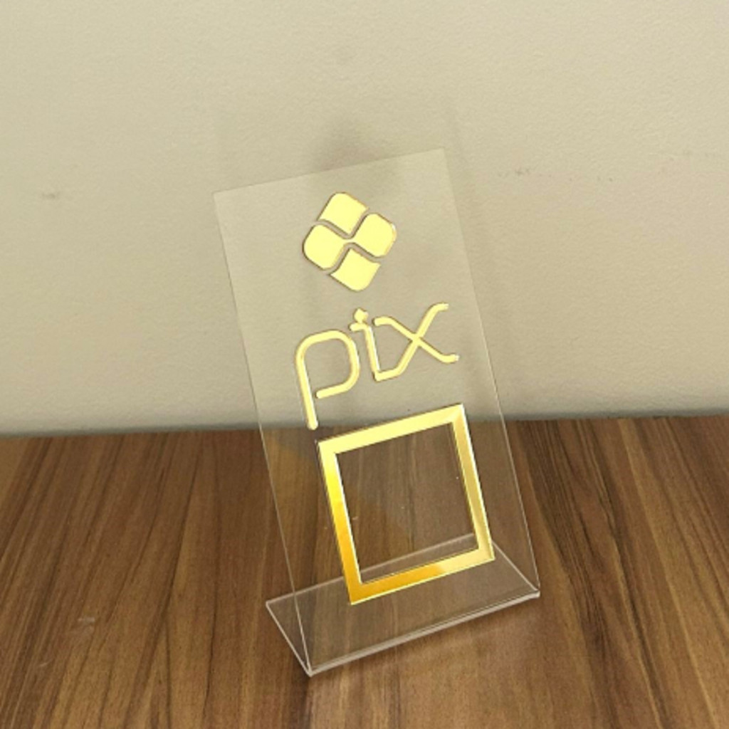 Placa Pix Pagamento QrCode De Mesa Balcão c/ base - Acrílico
