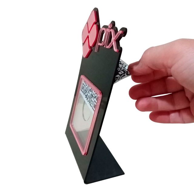 Placa Pix QRcode Preto com Dourado Acrilico