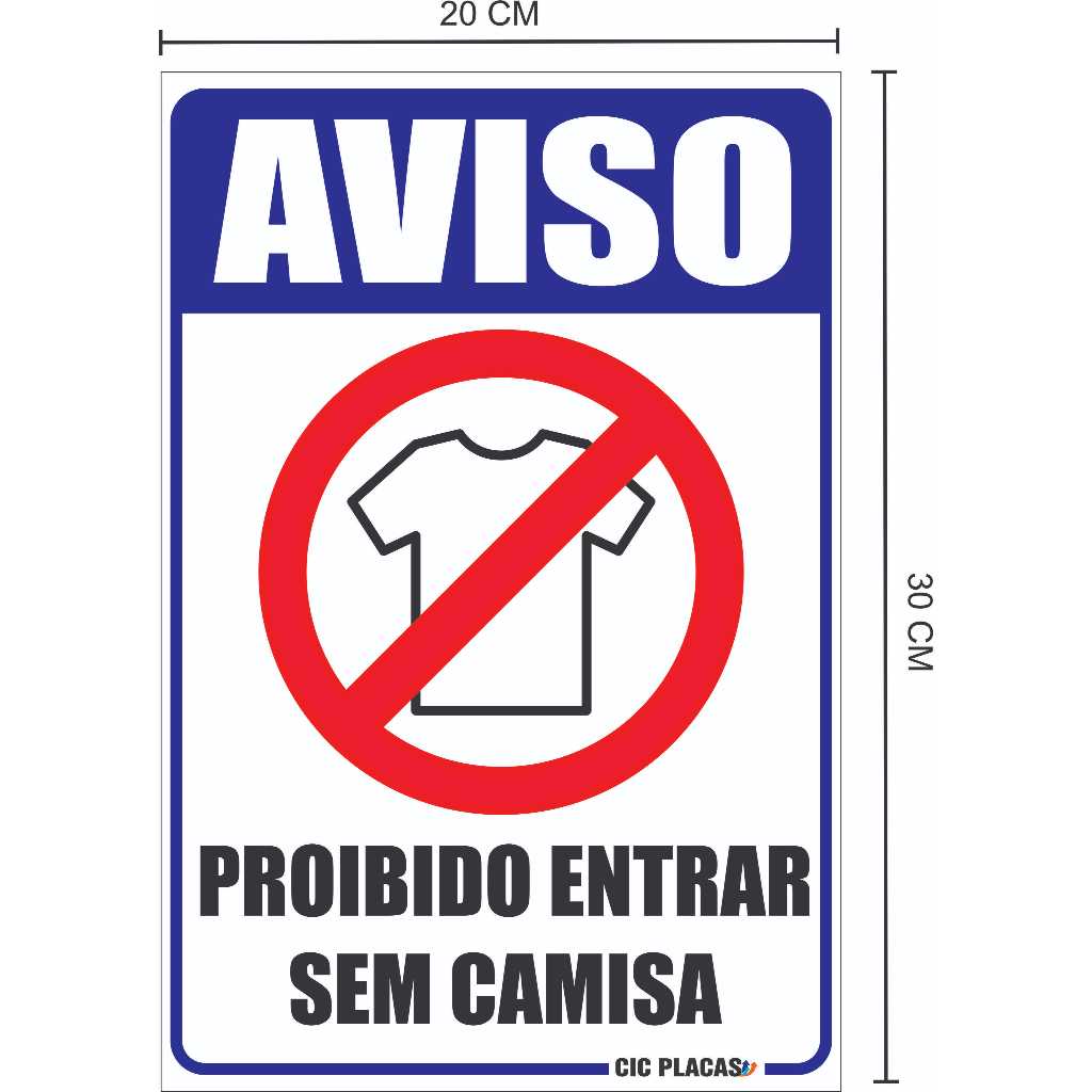 Placa Proibido Entrar Sem Camisa 20x30cm