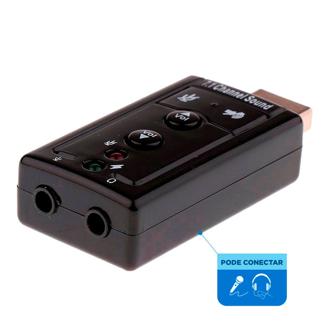 Placa de som Usb 7.1 Adaptador de áudio Saída para Fone e Microfone