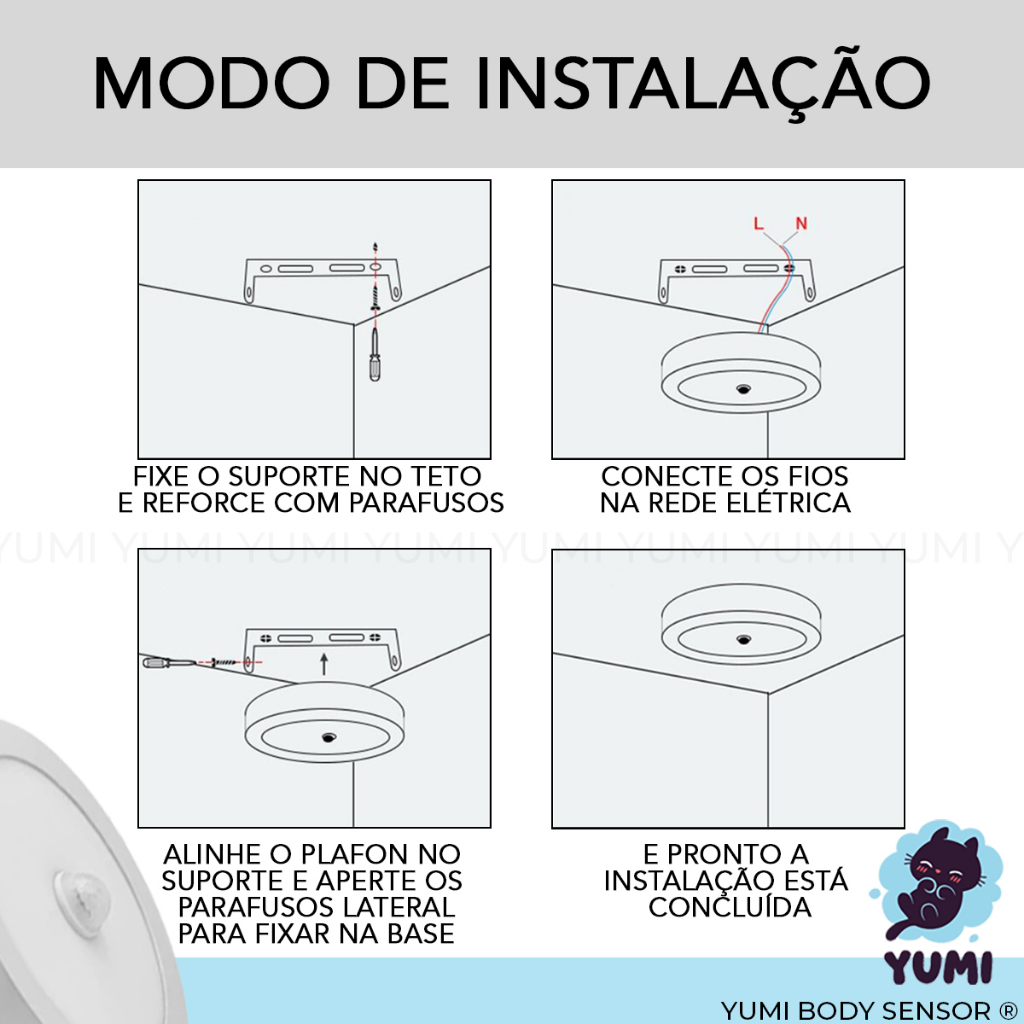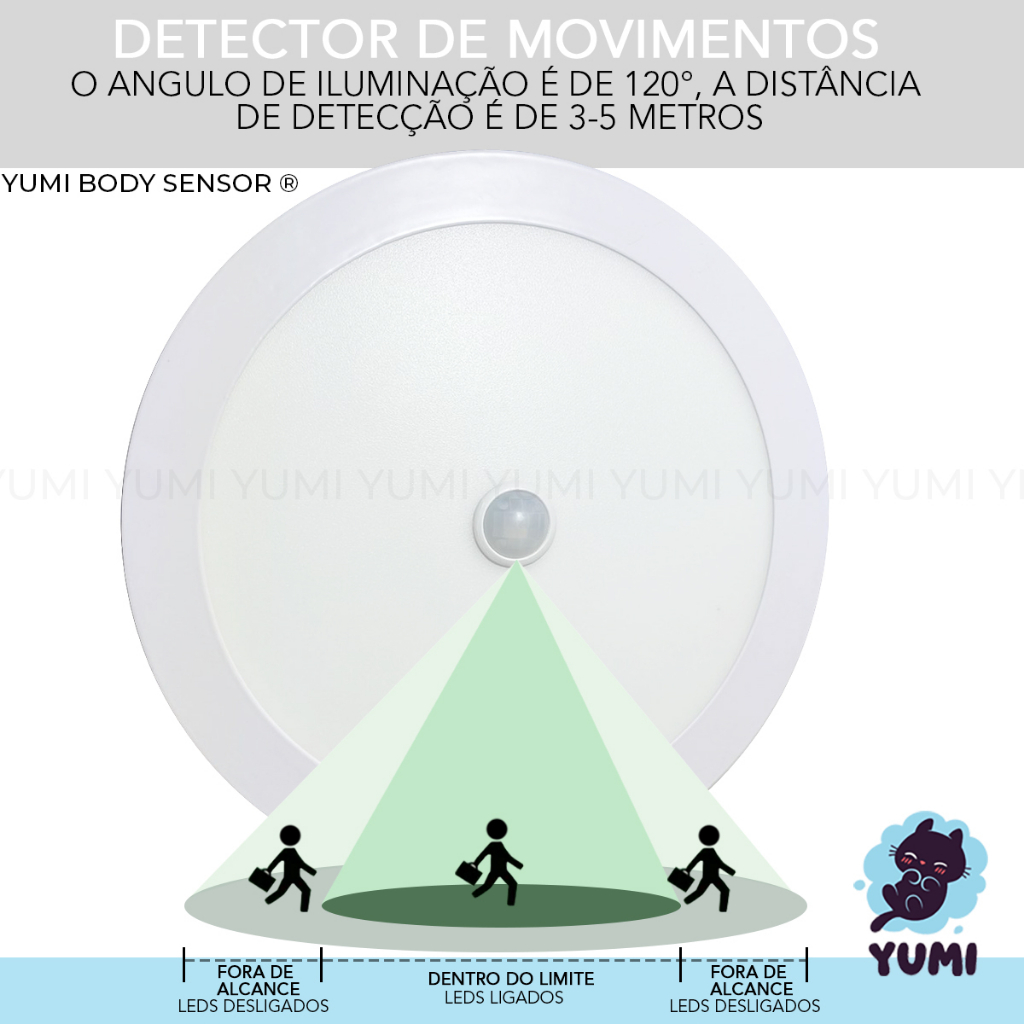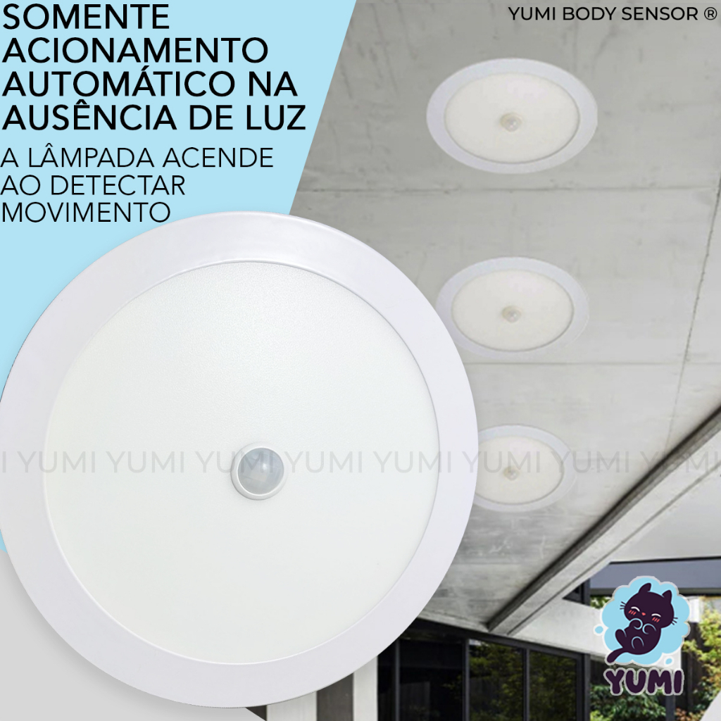 Plafon Led Com Sensor De Presença Movimentos 18w Sobrepor Ou Embutir 6 meses Garantia Branco Frio 6000k 110v/220v