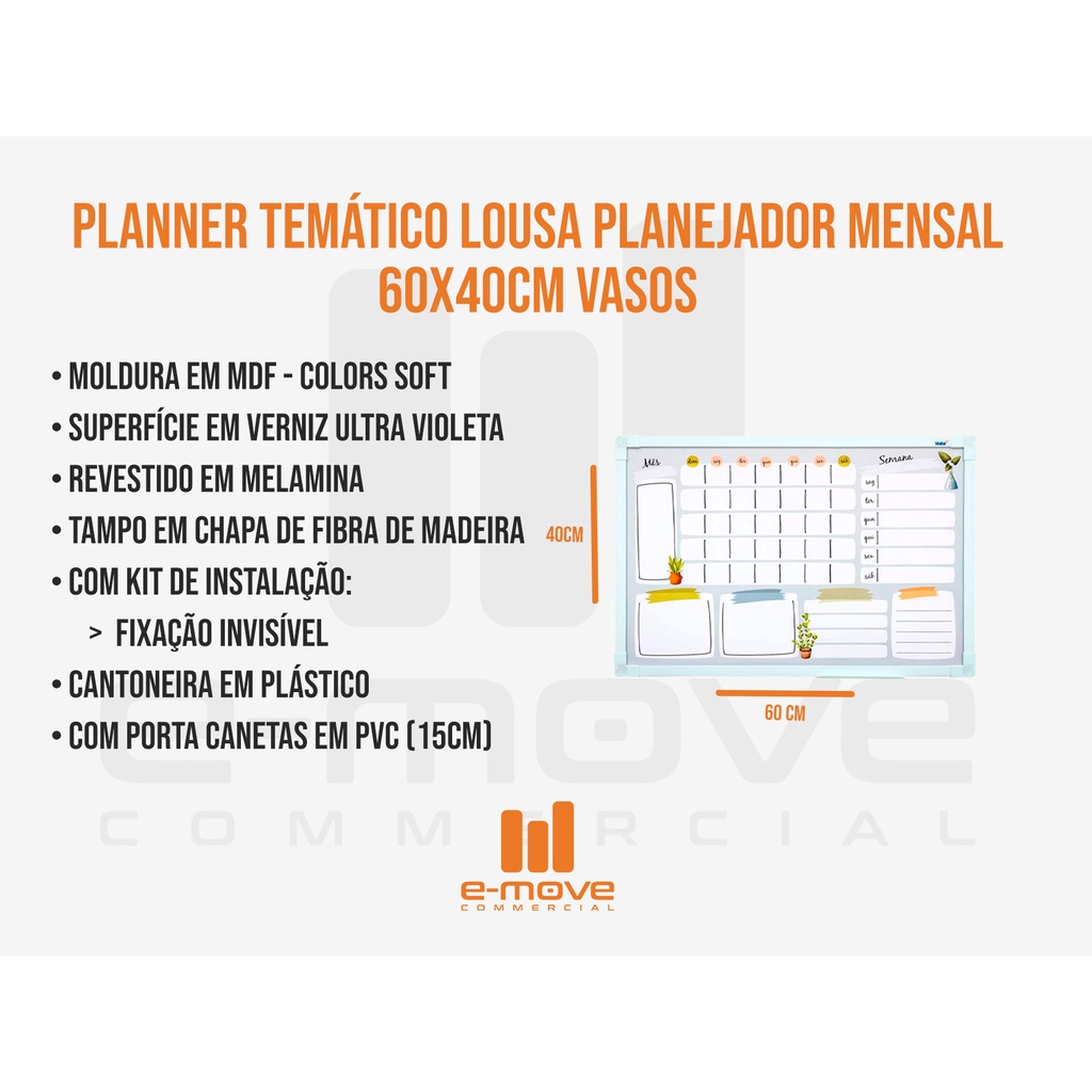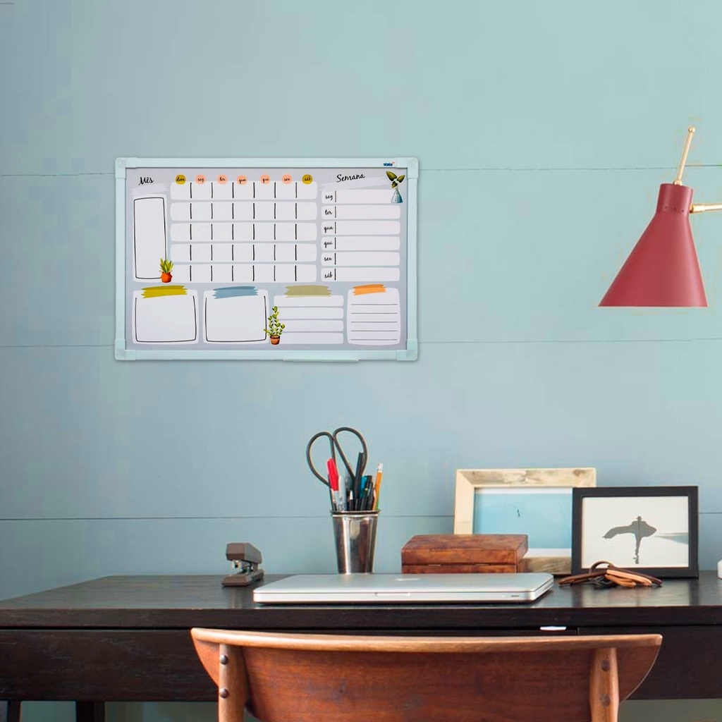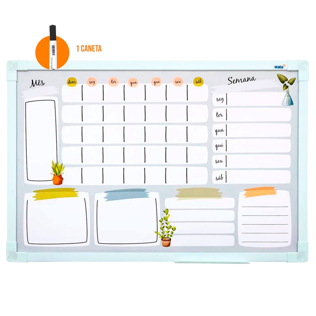 Planner Mensal De Parede 60x40cm Planejador Vasos + Caneta