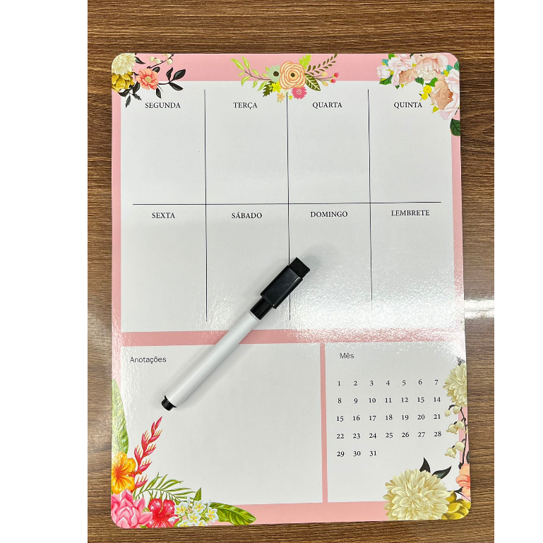 Planner Semanal Mensal Magnetico Ima De Geladeira Com Caneta ou Sem Caneta