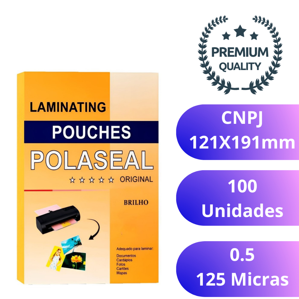 Polaseal Plástico Para Plastificação CNPJ 121X191mm 0,05mm Pouch Film 125 micras 100 Folhas