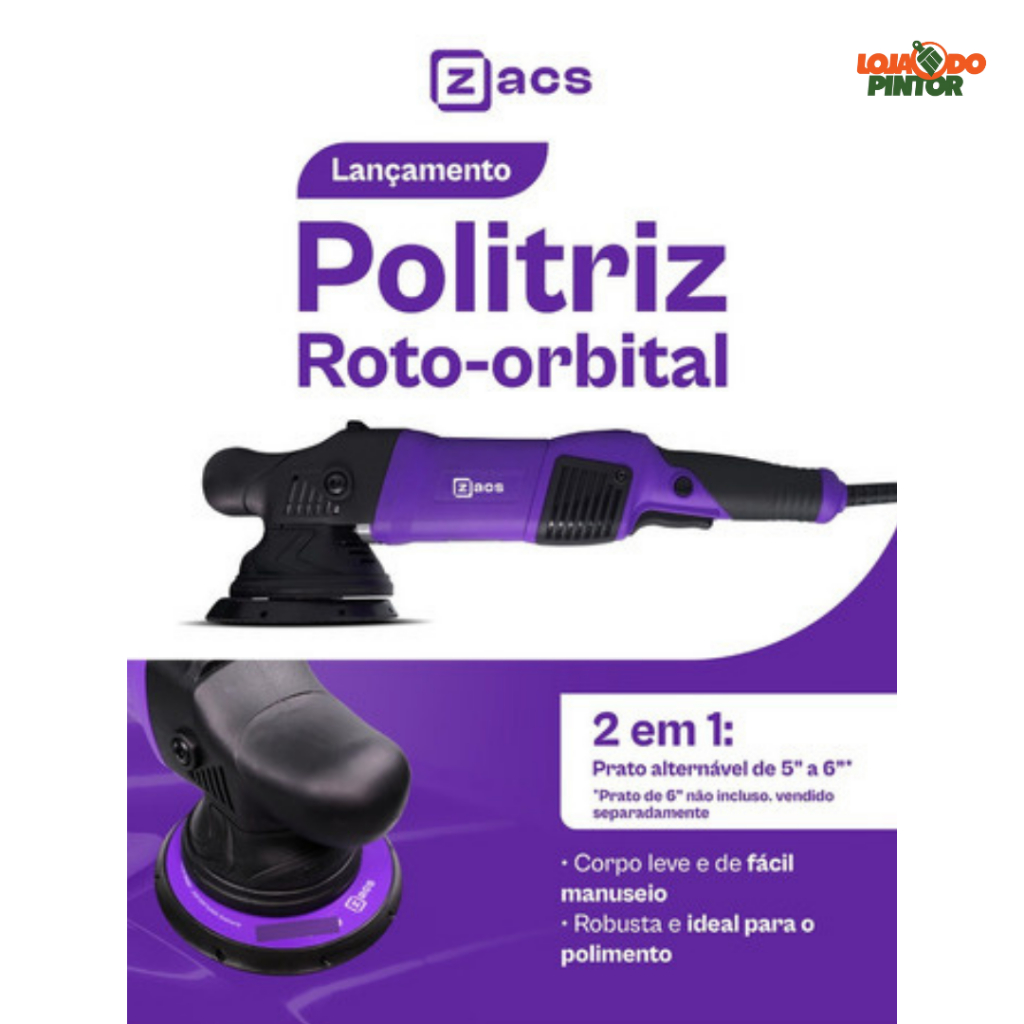 Politriz Elétrica Roto Orbital 5 E 6 Pol Zacs Polimento Automotivo - Com Prato 5Pol