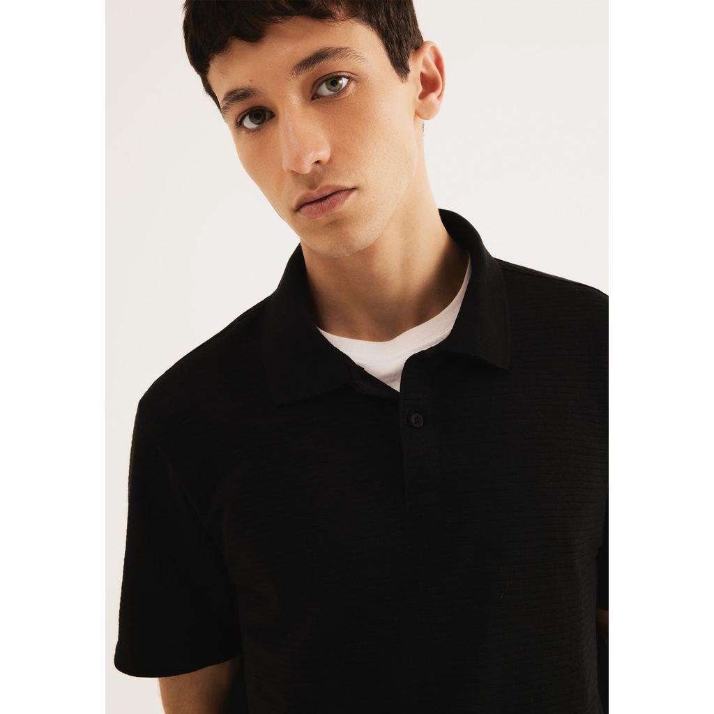 Polo Masculina Manga Curta Texturizada