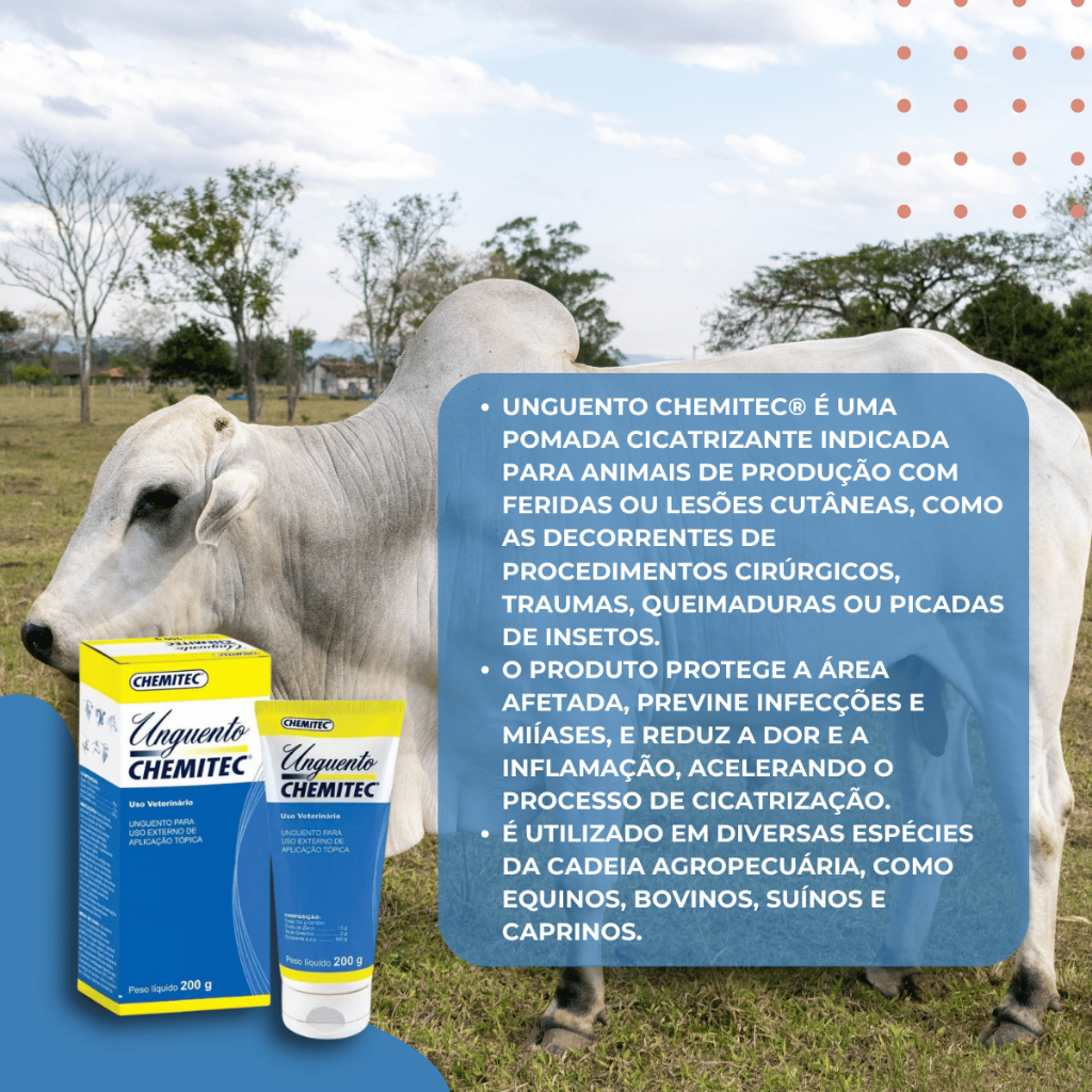 Pomada Cicatrizante Unguento 200g Chemitec Cães Gatos e Equinos